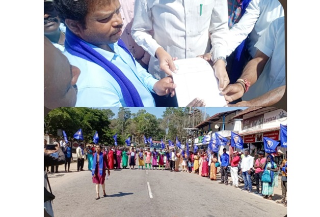 ಬೇಡಿಕೆಯ ಮನವಿ ಪತ್ರವನ್ನು ತಹಶೀಲ್ದಾರ್ ಮುಖಾಂತರ ರಾಜ್ಯಪಾಲರಿಗೆ ಸಲ್ಲಿಸಲಾಯಿತು.