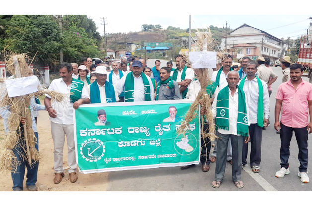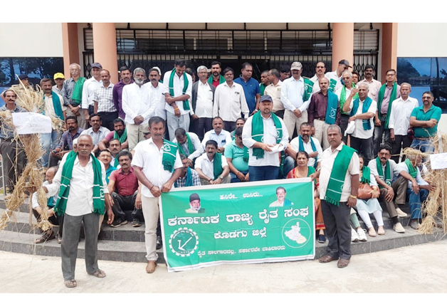 ಪ್ರತಿಭಟನೆಯಲ್ಲಿ ರೈತ ಸಂಘದ ಪ್ರಧಾನ ಕಾರ್ಯದರ್ಶಿ ಚೆಟ್ರುಮಾಡ ಸುಜೈ ಬೋಪಯ್ಯ, ಕಾರ್ಯದರ್ಶಿ ಅಜ್ಜಮಾಡ ಚಂಗಪ್ಪ, ಖಜಾಂಚಿ ಇಟ್ಟೀರ ಸಭಿತ ಭೀಮಯ್ಯ, ಸಂಚಾಲಕರಾದ ಪುಚ್ಚಿಮಾಡ ಸುಭಾಷ್ ಸುಬ್ಬಯ್ಯ, ಕಾನೂನು ಸಲಹೆಗಾರ ಕೆ.ಬಿ. ಹೇಮಚಂದ್ರ, ಪ್ರಮುಖರಾದ ಆಲೇಮಾಡ ಮಂಜುನಾಥ್, ಲಕ್ಷ್ಮಣ ಗರಗಂದೂರು, ಭವಿನ್ ಕುಮಾರ್, ಭವ್ಯ ಮತ್ತಿತ್ತರು ಪಾಲ್ಗೊಂಡಿದ್ದರು.