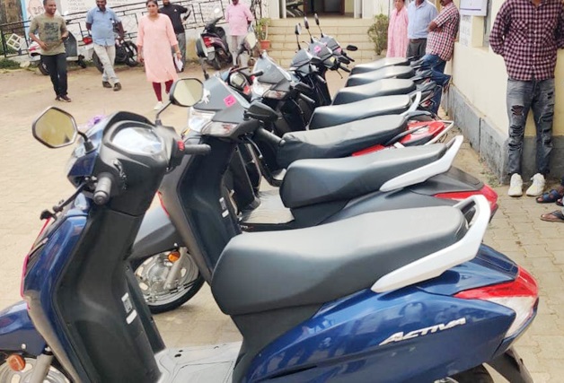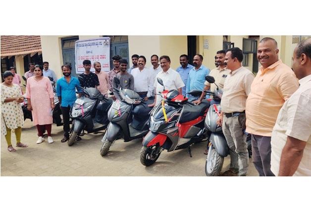 Share Facebook Twitter LinkedIn Pinterest WhatsApp Email ಮಡಿಕೇರಿ ಮಾ.28 : ಅಂಬೇಡ್ಕರ್ ಅಭಿವೃದ್ಧಿ ನಿಗಮದ ವತಿಯಿಂದ ಪೊನ್ನಂಪೇಟೆ ಕಛೇರಿಯಲ್ಲಿ ಫಲಾನುಭವಿಗಳಿಗೆ ವಿದ್ಯುತ್ ಚಾಲಿತ ಮತ್ತು ಇತರೆ ದ್ವಿ ಚಕ್ರ ಹಾಗೂ ತ್ರಿಚಕ್ರ ವಾಹನಗಳನ್ನು ವಿತರಿಸಲಾಯಿತು. ಶಾಸಕ ಕೆ.ಜಿ.ಬೋಪಯ್ಯ ಫಲಾನುಭವಿಗಳಿಗೆ ವಾಹನದ ಕೀ ಹಸ್ತಾಂತರಿಸಿದರು. ಈ ಸಂದರ್ಭ ಅಧಿಕಾರಿಗಳು ಹಾಜರಿದ್ದರು.