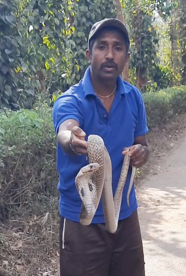 Share Facebook Twitter LinkedIn Pinterest WhatsApp Email ಮಡಿಕೇರಿ ಮಾ.28 : ಸಿದ್ದಾಪುರ ಗುಹ್ಯ ಗ್ರಾಮದ ಜಮೀಲಾ ಅವರ ಅಂಗಳದಲ್ಲಿದ್ದ 5 ಅಡಿ ಉದ್ದದ ನಾಗರ ಹಾವನ್ನು ಉರಗ ಪ್ರೇಮಿ ಸುರೇಶ್ ಪೂಜಾರಿ ರಕ್ಷಿಸಿ ಮಾಲ್ದಾರೆ ಅರಣ್ಯಕ್ಕೆ ಸುರಕ್ಷಿತವಾಗಿ ಬಿಟ್ಟಿದ್ದಾರೆ. ಹಾವುಗಳನ್ನು ಕಂಡರೆ ಕೊಲ್ಲದೆ ಈ ಸಂಖ್ಯೆಗೆ 8277131863 ಕರೆ ಮಾಡುವಂತೆ ಸುರೇಶ್ ಮನವಿ ಮಾಡಿದ್ದಾರೆ.