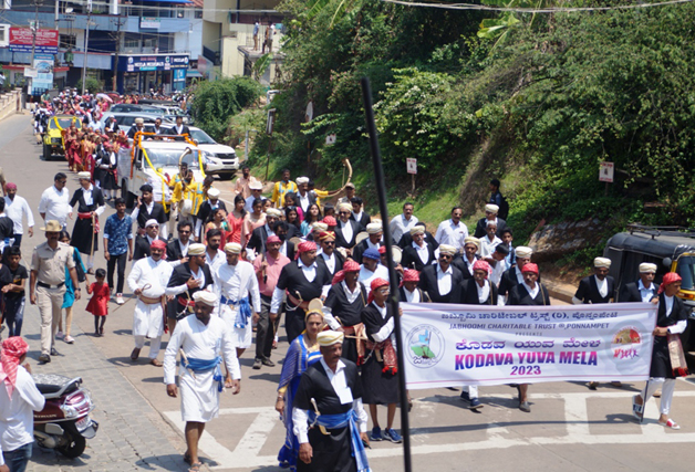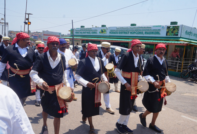 ಕೊಡವ ಜನಾಂಗದ ಸಾಧಕರ ಭಾವಚಿತ್ರಗಳೊಂದಿಗೆ ಕೊಡವ ಸಾಂಪ್ರದಾಯಿಕ ಉಡುಪು ಧರಿಸಿದ ಯುವಕರು, ಯುವತಿಯರು, ಕೊಡವ ಪರಂಪರೆಯ ಸಂಕೇತವಾದ ಕೋವಿಯನ್ನು ಹಿಡಿದು ಗತ್ತಿನಿಂದ ಮೆರವಣಿಗೆಯಲ್ಲಿ ಗತ್ತಿನಿಂದ ಹೆಜ್ಜೆ ಹಾಕಿದ ಪುರುಷರು ಮೆರವಣಿಗೆಗೆ ವಿಶೇಷ ಮೆರುಗನ್ನು ನೀಡಿದರು.