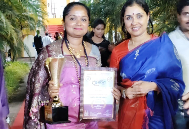 ಕನ್ನಡದ ಖ್ಯಾತ ನಟಿ ಅನುಪ್ರಭಾಕರ್ ಮುಖರ್ಜಿ ಹಾಗೂ ಗೋವಾ ಸರ್ಕಾರದ ಸಮಾಜ ಕಲ್ಯಾಣ ಹಾಗೂ ಪುರಾತತ್ವಶಾಸ್ತ್ರ ಸಚಿವ ಸುಭಾಷ್ ಪೌಲ್ ದೇಸಾಯಿ ಅವರಿಂದ, “ನಾಡ ಪೆದ ಆಶಾ” ಚಿತ್ರದ ನಿರ್ಮಾಪಕಿ ಈರಮಂಡ ಹರಿಣಿ ವಿಜಯ್ ಅವರು ಪ್ರಶಸ್ತಿಯನ್ನು ಸ್ವೀಕರಿಸಿದರು.
