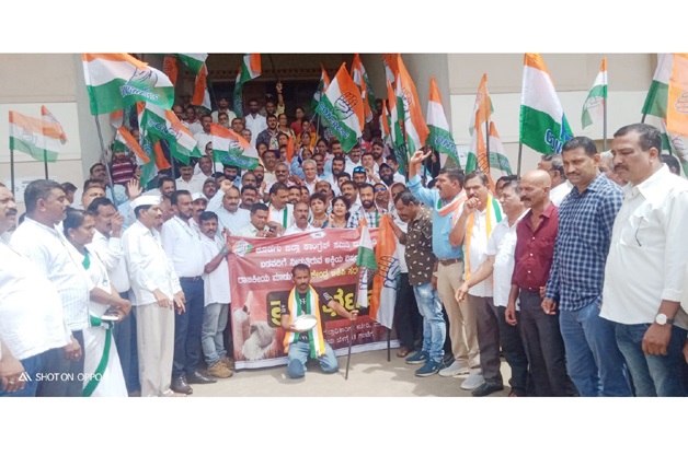 ಮಡಿಕೇರಿ ಜೂ.20 : `ಅನ್ನಭಾಗ್ಯ’ ಯೋಜನೆಯಡಿ ಹತ್ತು ಕೆ.ಜಿ.ಅಕ್ಕಿ ವಿತರಿಸುವ ರಾಜ್ಯ ಸರ್ಕಾರದ ಯೋಜನೆಯ ಜಾರಿಗೆ ಅಗತ್ಯವಾದ ಅಕ್ಕಿಯನ್ನು ಪೂರೈಸಲು ಕೇಂದ್ರ ಸರ್ಕಾರ ನಕಾರಾತ್ಮಕ ಧೋರಣೆ ತಳೆದಿರುವುದನ್ನು ಖಂಡಿಸಿ ಕೊಡಗು ಜಿಲ್ಲಾ ಕಾಂಗ್ರೆಸ್ ನಗರದಲ್ಲಿ ಪ್ರತಿಭಟನೆ ನಡೆಸಿತು.