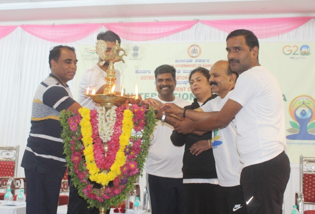 ಮಡಿಕೇರಿ ಜೂ.21 : ಜಿಲ್ಲಾಡಳಿತ, ಜಿಲ್ಲಾ ಪಂಚಾಯತ್, ಆಯುಷ್ ಇಲಾಖೆ ವತಿಯಿಂದ ಅಂತರರಾಷ್ಟ್ರೀಯ 9ನೇ ಯೋಗ ದಿನಾಚರಣೆಯು ನಗರದ ಗೌಡ ಸಮಾಜದಲ್ಲಿ ನಡೆಯಿತು.