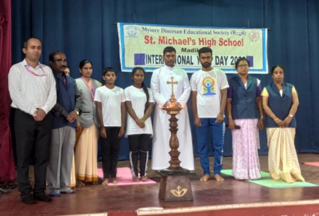 ಮಡಿಕೇರಿ ಜೂ.22 : ನಗರದ ಸಂತ ಮೈಕಲರ ಶಾಲೆಯಲ್ಲಿ ಯೋಗ ಗುರು ಸಂಕೇತ ಅವರ ಮಾರ್ಗದರ್ಶನದಲ್ಲಿ ಯೋಗ ದಿನಾಚರಣೆ ನಡೆಯಿತು.