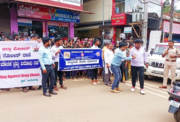 ನಾಪೋಕ್ಲು ಮಾರುಕಟ್ಟೆ ಬಳಿಯಿಂದ ಪಟ್ಟಣದ ಮುಖ್ಯ ಬೀದಿಗಳಲ್ಲಿ ಜಾಥಾ ನಡೆಸಿದ ವಿದ್ಯಾರ್ಥಿಗಳು ಹಾಗೂ ಪೊಲೀಸರು ವಿವಿಧ ಘೋಷ ವಾಕ್ಯಗಳೊಂದಿಗೆ ಮಾದಕ ವಸ್ತುಗಳ ಬಳಕೆಯಿಂದ ಉಂಟಾಗುವ ದುಷ್ಪರಿಣಾಮಗಳ ಕುರಿತು ಸಾರ್ವಜನಿಕರಿಗೆ ಅರಿವು ಮೂಡಿಸಿದರು.
