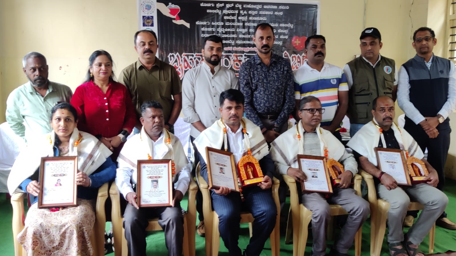 ಸನ್ಮಾನ : : ಪಾಲಿಬೆಟ್ಟ ಸಮುದಾಯ ಆರೋಗ್ಯ ಕೇಂದ್ರದ ಆಡಳಿತಾಧಿಕಾರಿ ಡಾ.ಲೋಹಿತ್, ದಂತ ವೈದ್ಯ ಡಾ.ಜಗದೀಶ್, ನಿವೃತ್ತ ಪೋಸ್ಟ್ ಮಾಸ್ಟರ್ ಕೆ.ರಘು, 27ನೇ ಬಾರಿ ರಕ್ತದಾನ ಮಾಡಿದ ವಿ.ವಿ.ಅರುಣ್ಕುಮಾರ್, 15ನೇ ಬಾರಿ ರಕ್ತದಾನ ಮಾಡಿದ ಟಿ.ಎಂ.ಪ್ರಿಯಾ ಅವರನ್ನು ಸನ್ಮಾನಿಸಲಾಯಿತು.