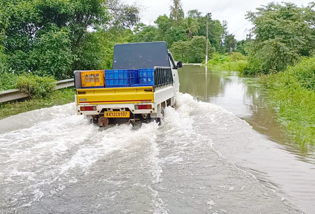 ಮಡಿಕೇರಿ ಜು.25 : ನಾಪೋಕ್ಲು ವ್ಯಾಪ್ತಿಯಲ್ಲಿ ಎಡಬಿಡದೆ ಸುರಿಯುತ್ತಿರುವ ಭಾರಿ ಗಾಳಿ ಮಳೆಯಿಂದ ಜನ ಜೀವನ ಅಸ್ತವ್ಯಸ್ತವಾಗಿದೆ. ರಸ್ತೆಗಳು ಜಲಾವೃತವಾಗಿದೆ. ಮೂರ್ನಾಡು ನಾಪೋಕ್ಲು, ಚೆರಿಯ ಪರಂಬು-ನಾಪೋಕ್ಲು, ಭಾಗಮಂಡಲ-ನಾಪೋಕ್ಲು ನಡುವಿನ ಸಂಪರ್ಕ ಕಡಿತಗೊಂಡಿದೆ.