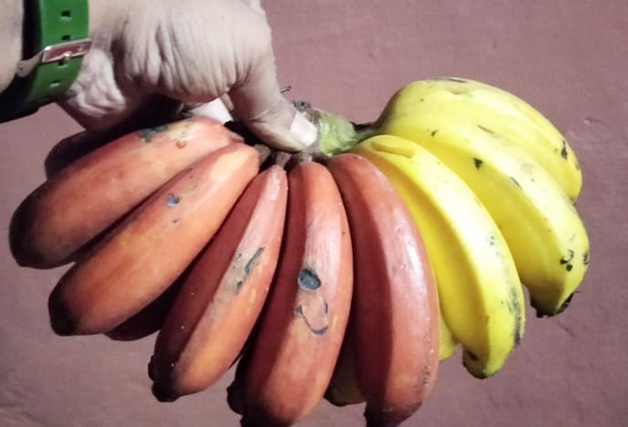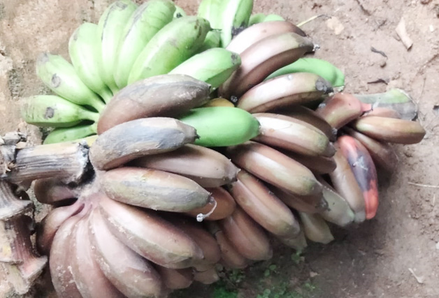 Share Facebook Twitter LinkedIn Pinterest WhatsApp Email ಮಡಿಕೇರಿ ಸೆ.8 : ಒಂದೇ ಗಿಡದ ಬಾಳೆಗೊನೆಯಲ್ಲಿ ಎರಡು ಬಣ್ಣದ ಬಾಳೆ ಹಣ್ಣು ಬಿಡುವ ಮೂಲಕ ಅಚ್ಚರಿ ಮೂಡಿಸಿದೆ. ಚೆಟ್ಟಳ್ಳಿಯ ಮುಳ್ಳಂಡ ಕರಣ್ ಸೋಮಣ್ಣ ಅವರ ಮನೆಯ ಪಕ್ಕದಲ್ಲಿ ಬೆಳೆದ ಒಂದೇ ಬಾಳೆಗೊನೆಯಲ್ಲಿ ವಿವಿಧ ಜಾತಿಯ ಹಾಗೂ ವಿವಿಧ ಬಣ್ಣದ ಬಾಳೆ ಬಿಡುವ ಮೂಲಕ ಸಾರ್ವಜನಿಕರ ಕುತೂಹಲಕ್ಕೆ ಕಾರಣವಾಗಿದೆ.