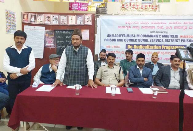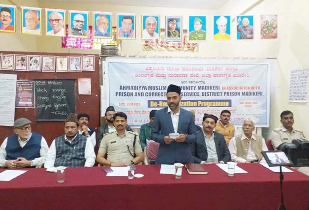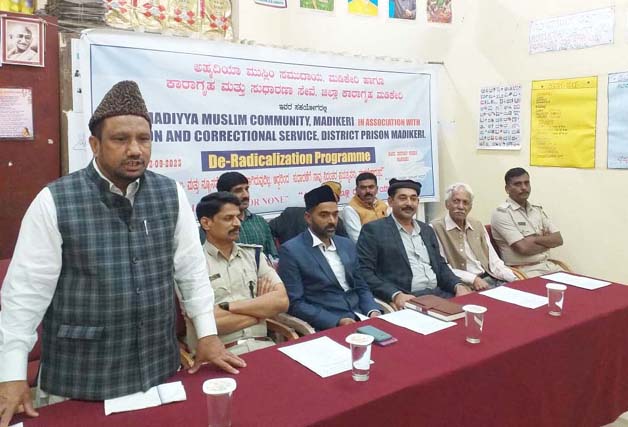 ಮಡಿಕೇರಿಯ ಅಹ್ಮದಿಯಾ ಮುಸ್ಲಿಂ ಜಮಾಅತ್ ಹಾಗೂ ಜಿಲ್ಲಾ ಕಾರಾಗೃಹ ಮತ್ತು ಸುಧಾರಣಾ ಸೇವಾ ಇಲಾಖೆ ಇವರ ಸಹಯೋಗದೊಂದಿಗೆ ಜಿಲ್ಲಾ ಕಾರಾಗೃಹದ ಸಭಾಂಗಣದಲ್ಲಿ ಕಾರಾಗೃಹದಲ್ಲಿನ ಖೈದಿಗಳಿಗೆ ಆಯೋಜಿಸಲಾಗಿದ್ದ ‘ಆಮೂಲಾಗ್ರ ಸುಧಾರಣೆ'(ಡಿ-ರಾಡಿಕಲೈಸೇಷನ್) ಕಾರ್ಯಕ್ರಮದಲ್ಲಿ ಮುಖ್ಯ ಅತಿಥಿಗಳಾಗಿ ಪಾಲ್ಗೊಂಡು ಅವರು ಮಾತನಾಡಿದರು.