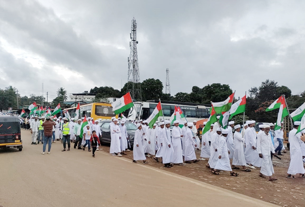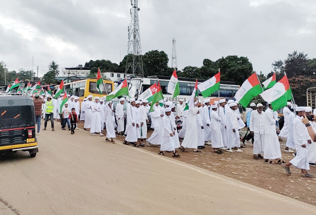 ಹಳೆ ತಾಲೂಕಿನಿಂದ ಸಂತೆ ಮೈದಾನದವರೆಗೆ ಮೆರವಣಿಗೆಯಲ್ಲಿ ಸಾಗಿದ ಮುಸ್ಲಿಂ ಬಾಂಧವರು ಶಾಂತಿಯ ಸಂದೇಶ ಸಾರಿದರು.