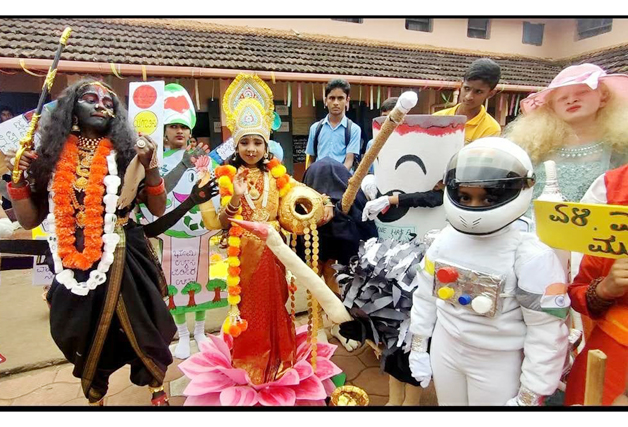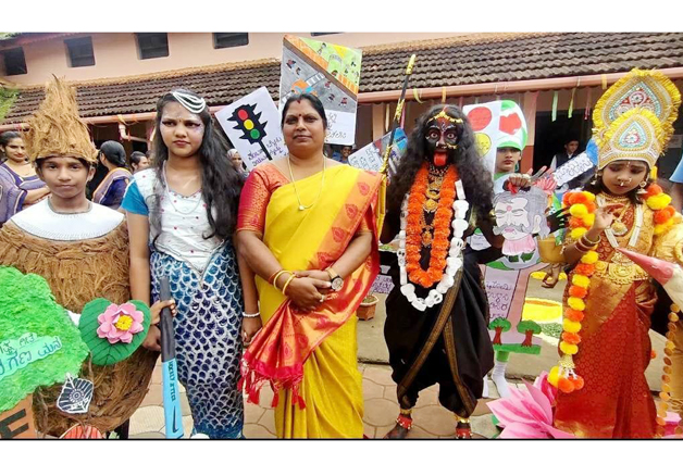 ಗಮನ ಸೆಳೆದ ಛದ್ಮವೇಷ : ಪ್ರತಿಭಾ ಕಲೋತ್ಸವ ಅಂಗವಾಗಿ ವಿವಿಧ ಶಾಲೆಗಳಿಂದ ಆಗಮಿಸಿದ್ದ ವಿದ್ಯಾರ್ಥಿಗಳು ಪರಿಸರ ಸಂರಕ್ಷಣೆ , ಪ್ರಕೃತಿ ಉಳಿಸಿ, ರಸ್ತೆ ಅಪಘಾತಗಳ ಕುರಿತ ಸೂಚನಾ ಫಲಕ, ಚಂದ್ರಯಾನ, ಭದ್ರಕಾಳಿ, ಮಹಾಲಕ್ಷ್ಮಿ, ಅಸ್ಟ್ರಿಜ್ ಪಕ್ಷಿ, ಜಲಕನ್ಯೆ, ಸಂಗೊಳ್ಳಿ ರಾಯಣ್ಣ, ಮಹಾತ್ಮ ಗಾಂಧಿ, ಸ್ವಾಮಿ ವಿವೇಕಾನಂದ, ಭಾರತದ ರಾಷ್ಟ್ರೀಯ ಚಿಹ್ನೆಗಳು, ತಂಬಾಕು ಸೇವನೆ ಬಗ್ಗೆ ಜಾಗೃತಿ ಫಲಕ , ಕಾಳಿಮಾತೆ, ಶ್ರೀಕೃಷ್ಣ, ಸ್ಪೈಡರ್, ನ್ಯಾಯ ದೇವತೆ, ನೇಗಿಲ ಯೋಗಿ ಹೀಗೆ ವಿವಿಧ ವೇಷಗಳನ್ನು ಪ್ರದರ್ಶಿಸುವ ಮೂಲಕ ಎಲ್ಲರ ಗಮನ ಸೆಳೆದರು.