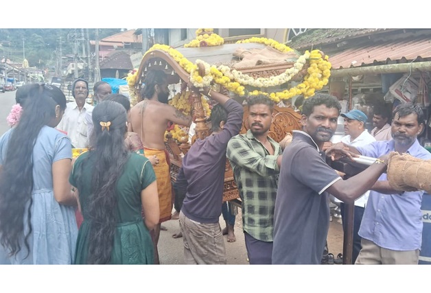 ವಿರಾಜಪೇಟೆ ಸೆ.18 : ವಿರಾಜಪೇಟೆಯ ಐತಿಹಾಸಿಕ ಜೈನರ ಬೀದಿಯ ಶ್ರೀ ಬಸವೇಶ್ವರ ದೇವಾಲಯ ದ ಪ್ರದೇಶ ಗೌರಮ್ಮನ ಪಲ್ಲಕ್ಕಿ ನಗರ ಪ್ರದಕ್ಷಿಣೆ ಸೇವೆಯು ಶ್ರದ್ಧಾಭಕ್ತಿಯಿಂದ ನಡೆಯಿತು.