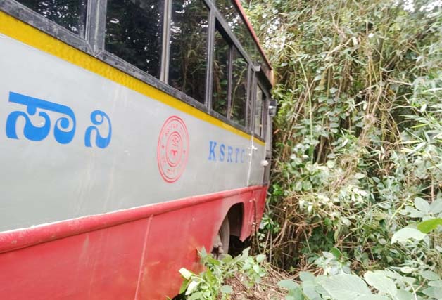 ಮಡಿಕೇರಿಯಿಂದ ಸೂರ್ಲಬ್ಬಿ ಮಾರ್ಗವಾಗಿ ಸೋಮವಾರಪೇಟೆಗೆ ತೆರಳುತ್ತಿದ್ದ ಕೆಎಸ್ಆರ್ಟಿಸಿ ಬಸ್ ಕುಂಬಾರಗಡಿಗೆ ಗ್ರಾಮದ ತಿರುವಿನಲ್ಲಿ ಚಾಲಕನ ನಿಯಂತ್ರಣ ತಪ್ಪಿ ರಸ್ತೆ ಪಕ್ಕದ ಮರಕ್ಕೆ ಡಿಕ್ಕಿಯಾಗಿದೆ. ಬಸ್ ನಲ್ಲಿ ಹೆಚ್ಚಾಗಿ ಶಾಲಾ ಮಕ್ಕಳೆ ಪ್ರಯಾಣಿಸುತ್ತಿದ್ದು ಅದೃಷ್ಟವಶಾತ್ ಯಾವುದೇ ಪ್ರಾಣಾಪಾಯ ಸಂಭವಿಸಿಲ್ಲ.