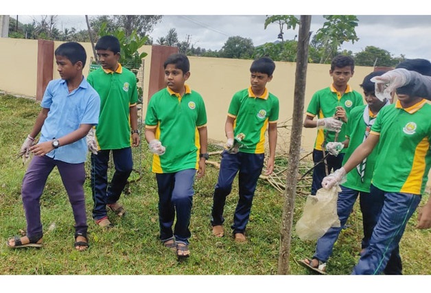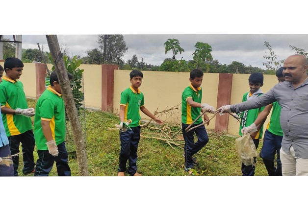 ಶಾಲಾವರಣ ಮತ್ತು ಸುತ್ತಮುತ್ತಲಿನ ಪ್ರದೇಶದಲ್ಲಿ ಶಿಕ್ಷಕರು ಮತ್ತು ವಿದ್ಯಾರ್ಥಿಗಳು ಜತೆಗೂಡಿ