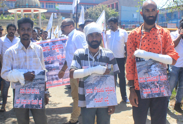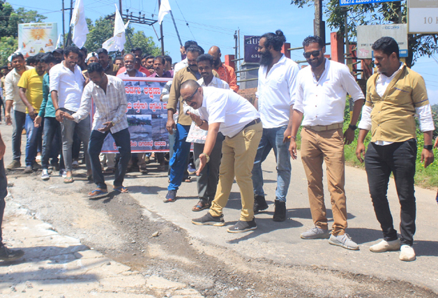 ಪವನ್ ಪೆಮ್ಮಯ್ಯ ಮಾತನಾಡಿ ನಗರದ ಎಲ್ಲಾ ರಸ್ತೆಗಳು ಹದಗೆಟ್ಟು ಹೊಂಡ ಗುಂಡಿಗಳಾಗಿವೆ, ಪಾದಾಚಾರಿಗಳು ಹಾಗೂ ದ್ವಿಚಕ್ರ ವಾಹನ ಚಾಲಕರು ಬಿದ್ದು ಗಾಯಗೊಂಡ ಘಟನೆಗಳೂ ನಡೆದಿದೆ. ಕೆಲವು ಬಡಾವಣೆಗಳಲ್ಲಿ ವಾಹನ ಸಂಚಾರವೇ ದುಸ್ತರವಾಗಿದೆ. ಹೊಂಡ ಗುಂಡಿಗಳಾದ ಅಶುಚಿತ್ವದ ರಸ್ತೆಗಳಲ್ಲೇ ಸಂಚರಿಸಬೇಕಾದ ಅನಿವಾರ್ಯತೆ ಎದುರಾಗಿದೆ. ರಸ್ತೆಗಳ ಅಭಿವೃದ್ಧಿ ಮತ್ತು ದುರಸ್ತಿ ಬಗ್ಗೆ ಕಾಳಜಿ ತೋರದ ನಗರಸಭೆ ಕಳಪೆ ಕಾಮಗಾರಿ ಮೂಲಕ ಕಾಲ ಕಳೆಯುತ್ತಿದೆ. ಅಭಿವೃದ್ಧಿ ಕಾರ್ಯಗಳನ್ನು ಕೈಗೊಳ್ಳುವಲ್ಲಿ ಸಂಪೂರ್ಣವಾಗಿ ವಿಫಲವಾಗಿದೆ ಎಂದು ಆರೋಪಿಸಿದರು.
