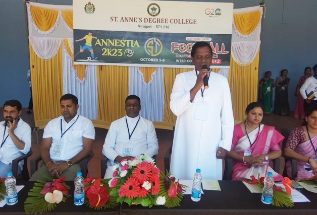 ವಿರಾಜಪೇಟೆಯ ಸಂತ ಅನ್ನಮ್ಮ ಕಾಲೇಜಿನ ವತಿಯಿಂದ ಆಯೋಜಿಸಲಾಗಿದ್ದ ರಾಷ್ಟ್ರ ಮಟ್ಟದ ಫುಟ್ಬಾಲ್ ಪಂದ್ಯಾವಳಿಯನ್ನು ಉದ್ಘಾಟಿಸಿ ಮಾತನಾಡಿ, ಕಾಲೇಜು ಜೀವನ ಅತೀ ಮುಖ್ಯವಾಗಿದೆ. ಆಟಗಾರರು ಶಿಸ್ತನ್ನು ಕಾಪಾಡುವುದರ ಮೂಲಕ ಆರೋಗ್ಯಕರ ಜೀವನ ನಡೆಸುವಂತಾಗಬೇಕು. ಆಟದಲ್ಲಿ ಗೆಲ್ಲುವುದಕ್ಕಿಂತ ಪಾಲ್ಗೊಳ್ಳುವಿಕೆ ಅತೀ ಮುಖ್ಯ ಎಂದು ಹೇಳಿದರು.