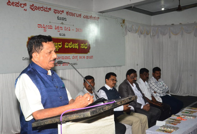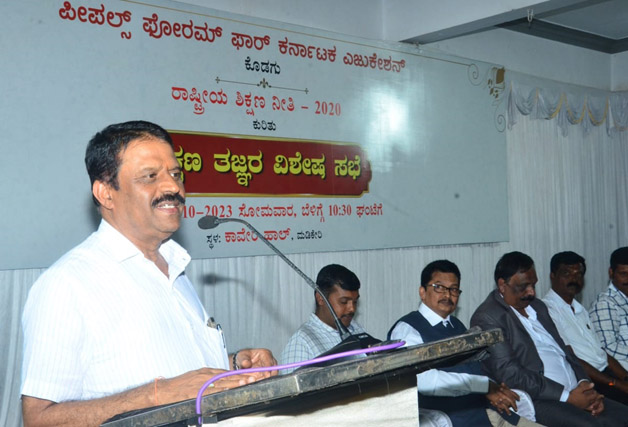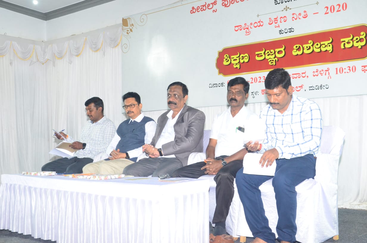 ಮಡಿಕೇರಿ ಅ.10 : ಪೀಪಲ್ಸ್ ಫೋರಮ್ ಫಾರ್ ಕರ್ನಾಟಕ ಎಜುಕೇಶನ್ ನ ಕೊಡಗು ಶಾಖೆ ವತಿಯಿಂದ ರಾಷ್ಟ್ರೀಯ ಶಿಕ್ಷಣ ನೀತಿ-2020ರ ಅನುಷ್ಠಾನದ ಕುರಿತು ಮಡಿಕೇರಿಯಲ್ಲಿ ಶಿಕ್ಷಣ ತಜ್ಞರ ವಿಶೇಷ ಸಭೆ ನಡೆಯಿತು.