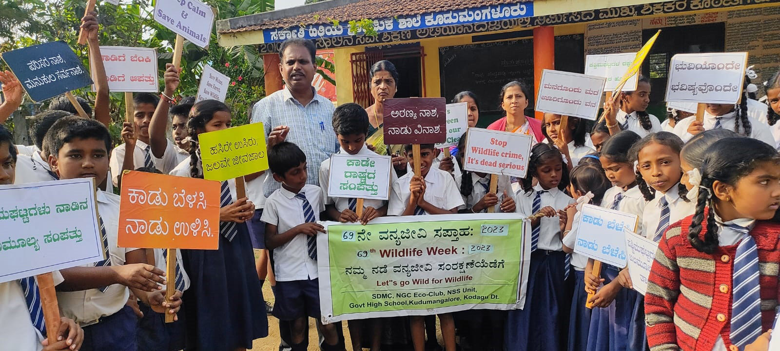 ಗ್ರಾಮದಲ್ಲಿ ನಡೆದ ಜಾಗೃತಿ ಅಭಿಯಾನದಲ್ಲಿ ವಿದ್ಯಾರ್ಥಿಗಳು ಅರಣ್ಯ ಮತ್ತು ವನ್ಯಜೀವಿಗಳ ಸಂರಕ್ಷಣೆ ಕುರಿತು ವಿವಿಧ ಘೋಷಣಾ ಫಲಕಗಳನ್ನು ಹಿಡಿದು ವನ್ಯಜೀವಿಗಳ ಸಂರಕ್ಷಣೆ ಕುರಿತು ಜಾಗೃತಿ ಮೂಡಿಸಿದರು.