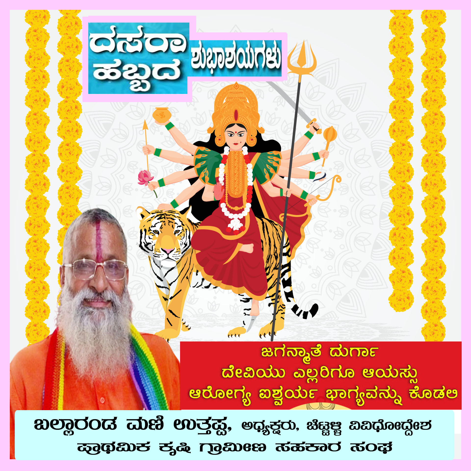 Share Facebook Twitter LinkedIn Pinterest WhatsApp Email *ದಸರಾ ಹಬ್ಬದ ಶುಭಾಶಯಗಳು : ಶ್ರೀಚಾಮುಂಡೇಶ್ವರಿ ತಾಯಿ ಸರ್ವರಿಗೂ ಆರೋಗ್ಯ, ಐಶ್ವರ್ಯ, ನೆಮ್ಮದಿ ನೀಡಲಿ*(ಬಲ್ಲಾರಂಡ ಮಣಿ ಉತ್ತಪ್ಪ, ಚೆಟ್ಟಳ್ಳಿ ವಿವಿಧೋದ್ದೇಶ ಪ್ರಾಥಮಿಕ ಗ್ರಾಮೀಣ ಸಹಕಾರ ಸಂಘ)