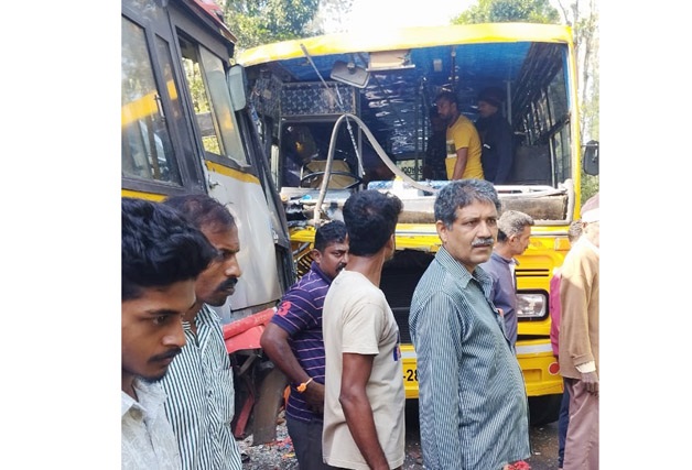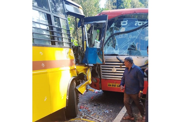 Share Facebook Twitter LinkedIn Pinterest WhatsApp Email ಮಡಿಕೇರಿ ಅ.26 : ಕೆಎಸ್ಆರ್ಟಿಸಿ ಹಾಗೂ ಶಾಲಾ ಬಸ್ ನಡುವೆ ಮುಖಾಮುಖಿ ಡಿಕ್ಕಿಯಾಗಿರುವ ಘಟನೆ ಕಾನೂರು ಸಮೀಪದ ಬಾಳೆಲೆ ಬಳಿ ನಡೆದಿದೆ. ಎರಡು ಬಸ್ ಗಳಿಗೆ ಹಾನಿಯಾಗಿದ್ದು, ಅದೃಷ್ಟವಶಾತ್ ಪ್ರಯಾಣಿಕರು ಅಪಾಯದಿಂದ ಪಾರಾಗಿದ್ದಾರೆ.