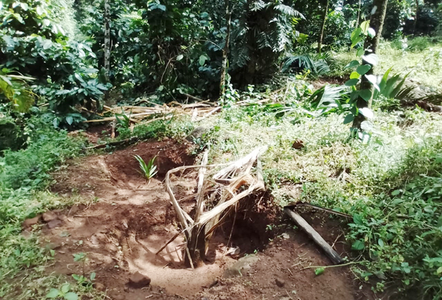 ಗ್ರಾಮದ ನಿವಾಸಿಗಳಾದ ರಧೀಶ್, ಜೋಸೆಫ್, ಮೋಹನ ಹಾಗೂ ಮನೋಜ್ ಅವರ ತೋಟಕ್ಕೆ ನುಗ್ಗಿ ಅಡಿಕೆ, ಕಾಫಿ, ತೆಂಗುಗಳನ್ನು ಧ್ವಂಸಗೊಳಿಸಿದೆ.