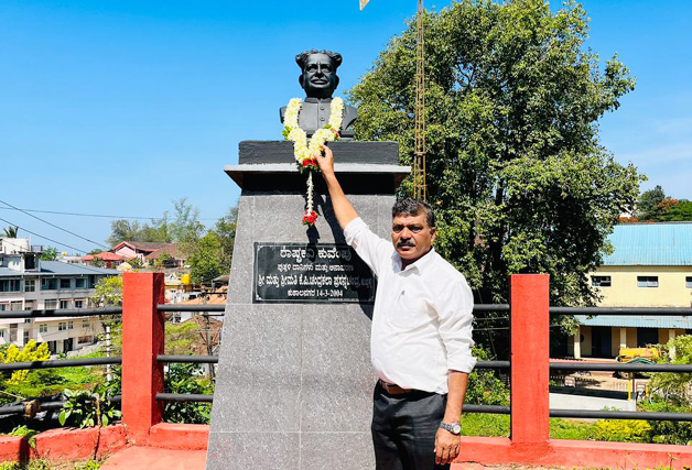 ಹಿತರಕ್ಷಣಾ ವೇದಿಕೆಯ ಗೌರವ ಅಧ್ಯಕ್ಷ ಖಲೀಲ್ ಭಾಷಾ ಅವರು ರಾಷ್ಟ್ರಕವಿ ಕುವೆಂಪು ಅವರ ಪುತ್ತಳಿಗೆ ಮಾಲಾರ್ಪಣೆ ಮಾಡಿದರು.