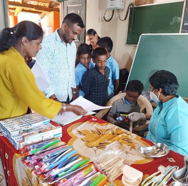 ದಂತ ತಪಾಸಣೆಯ ನಂತರ ಶಾಲಾ ಮಕ್ಕಳಿಗೆ ಟೂತ್ ಬ್ರಶ್ ಹಾಗೂ ಟೂತ್ ಪೇಸ್ಟ್ ಅನ್ನು ಉಚಿತವಾಗಿ ನೀಡಲಾಯಿತು.