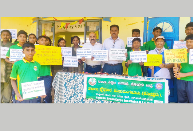 ಕುಶಾಲನಗರ (ಕೂಡಿಗೆ) ನ.11 : ಶಾಲಾ ಶಿಕ್ಷಣ ಇಲಾಖೆ ಹಾಗೂ ಕರ್ನಾಟಕ ರಾಜ್ಯ ಮಾಲಿನ್ಯ ನಿಯಂತ್ರಣ ಮಂಡಳಿಯ ಕೊಡಗು ಪ್ರಾದೇಶಿಕ ಕಛೇರಿ ವತಿಯಿಂದ ಕುಶಾಲನಗರ ತಾಲ್ಲೂಕಿನ ಕೂಡುಮಂಗಳೂರು(ಕೂಡ್ಲೂರು) ಸರ್ಕಾರಿ ಪ್ರೌಢಶಾಲೆಯಲ್ಲಿ ‘ ಗೋ ಗ್ರೀನ್ ಅಭಿಯಾನ’ದಡಿ ಪರಿಸರ ಸ್ನೇಹಿ ಹಸಿರು ದೀಪಾವಳಿ ಆಚರಣೆ ಕುರಿತ ಪರಿಸರ ಜಾಗೃತಿ ಆಂದೋಲ ನಡೆಯಿತು.