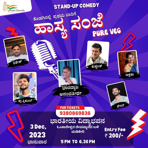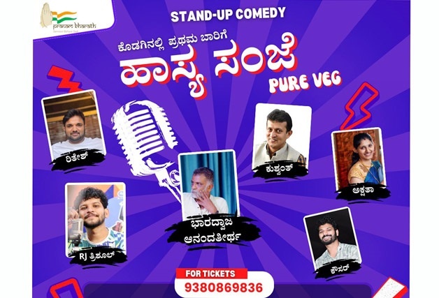 ಮಡಿಕೇರಿ ನ.30 : ಪ್ರಣಾಮ್ ಭಾರತ ವತಿಯಿಂದ ಡಿ.3 ರಂದು ಮಡಿಕೇರಿಯಲ್ಲಿ ಹಾಸ್ಯ ಸಂಜೆ ಎಂಬ “ಸ್ಟ್ಯಾಂಡ್ ಅಪ್ ಕಾಮಿಡಿ” ವಿನೂತನ ಕಾರ್ಯಕ್ರಮ ನಡೆಯಲಿದೆ.
