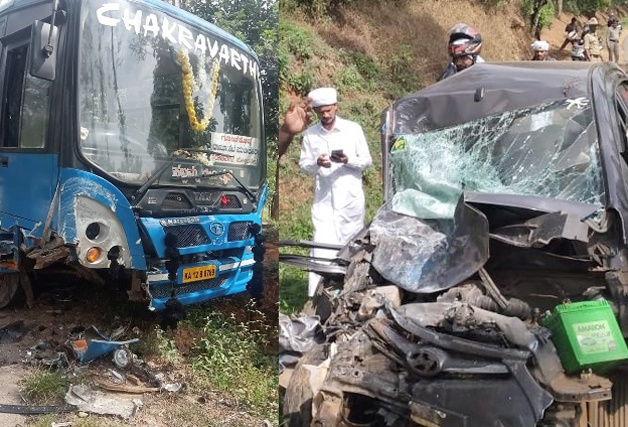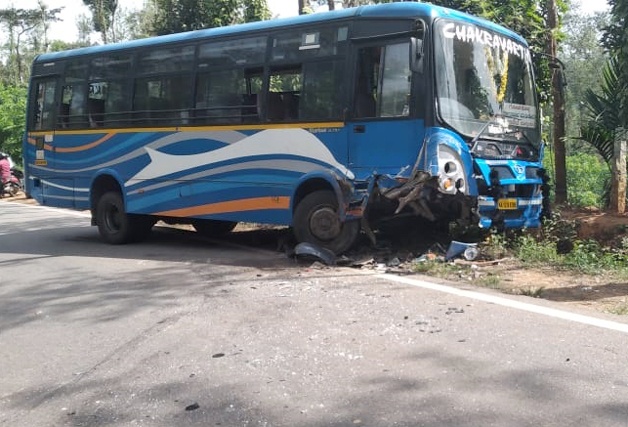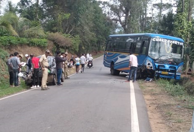ಮೂರ್ನಾಡು ಕಡೆಯಿಂದ ಮಡಿಕೇರಿಗೆ ಬರುತ್ತಿದ್ದ ಕಾರು ಹಾಗೂ ಮಡಿಕೇರಿ ಕಡೆಯಿಂದ ಮೂರ್ನಾಡು ಮಾರ್ಗವಾಗಿ ವಿರಾಜಪೇಟೆಗೆ ತೆರಳುತ್ತಿದ್ದ ಬಸ್ಸಿನ ನಡುವೆ ಅಪಘಾತ ಸಂಭವಿಸಿತು. ಸ್ಥಳಕ್ಕೆ ಪೊಲೀಸರು ಭೇಟಿ ನೀಡಿ ಮುಂದಿನ ಕ್ರಮ ಕೈಗೊಂಡಿದ್ದಾರೆ.