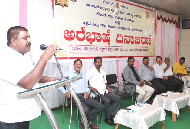 ಕರ್ನಾಟಕ ಅರೆಭಾಷೆ ಸಂಸ್ಕೃತಿ ಮತ್ತು ಸಾಹಿತ್ಯ ಅಕಾಡೆಮಿ, ಕೊಡಗು ಗೌಡ ಸಮಾಜಗಳ ಒಕ್ಕೂಟ ಮತ್ತು ಜಿಲ್ಲೆಯ ಗೌಡ ಸಮಾಜ-ಸಂಘಟನೆಗಳ ಸಹಯೋಗದಲ್ಲಿ ನಗರದ ಗೌಡ ಸಮಾಜದ ಸಭಾಂಗಣದಲ್ಲಿ ಶುಕ್ರವಾರ ನಡೆದ ‘ಅರೆಭಾಷೆ ದಿನಾಚರಣೆ’ ಕಾರ್ಯಕ್ರಮದಲ್ಲಿ ಮುಖ್ಯ ಅತಿಥಿಗಳಾಗಿ ಪಾಲ್ಗೊಂಡು ಅವರು ಮಾತನಾಡಿದರು.