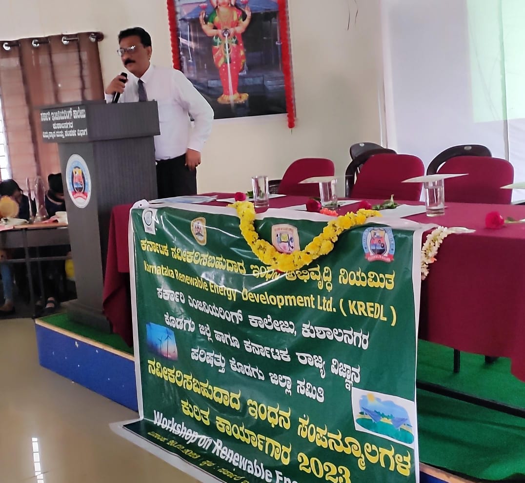 ನವೀಕರಿಸಬಹುದಾದ ಇಂಧನ / ಶಕ್ತಿ ಸಂಪನ್ಮೂಲಗಳ ಕುರಿತು ಒಂದು ದಿನದ ಕಾರ್ಯಾಗಾರ ನಡೆಯಿತು.