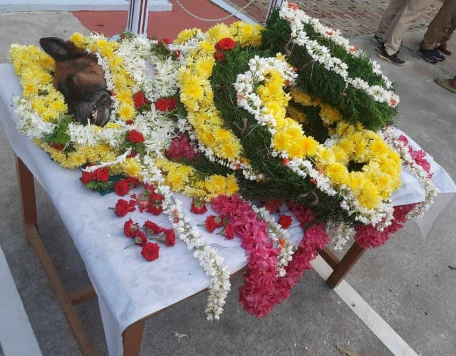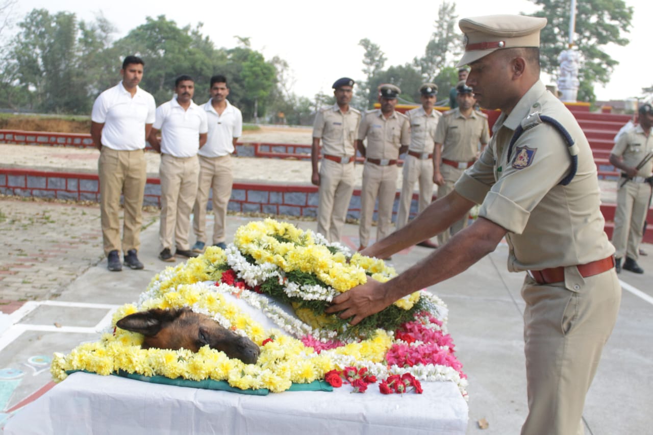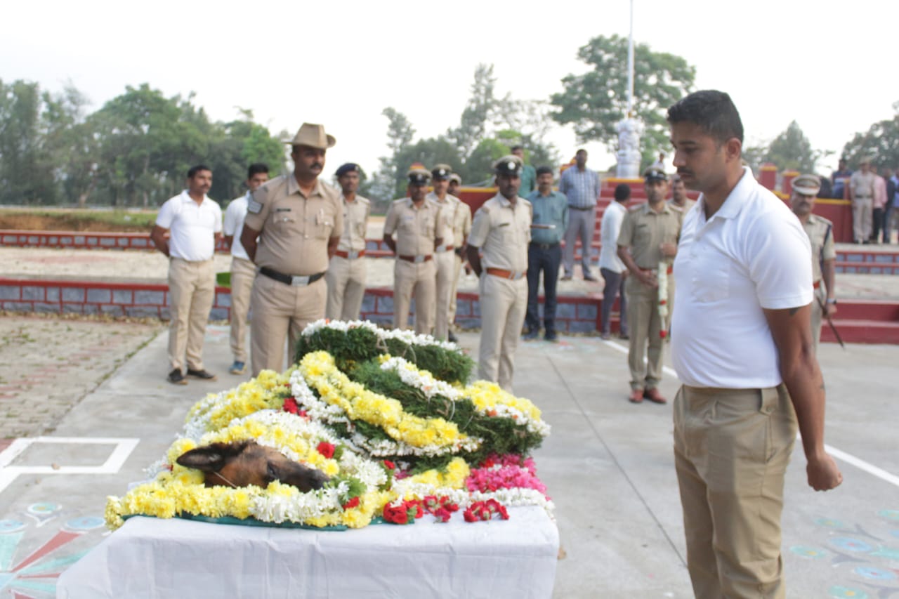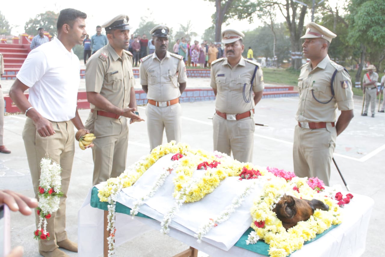 ಇಂದು ಮೃತ ಲಿಯೋಗೆ ಅಂತಿಮ ಗೌರವ ಸಲ್ಲಿಸಿದ ಜಿಲ್ಲಾ ಪೊಲೀಸ್ ವರಿಷ್ಠಾಧಿಕಾರಿ ಕೆ.ರಾಮರಾಜನ್, ಪೊಲೀಸ್ ಅಧಿಕಾರಿಗಳು ಹಾಗೂ ಸಿಬ್ಬಂದಿಗಳು ಕರ್ತವ್ಯದ ಅವಧಿಯಲ್ಲಿ ಲಿಯೋ ನೀಡಿದ ಅತ್ಯುತ್ತಮ ಸೇವೆಯನ್ನು ಸ್ಮರಿಸಿದರು.