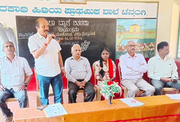 ಚೆನ್ನಂಗಿ ಸರ್ಕಾರಿ ಶಾಲೆಯಲ್ಲಿ ಕಲಿಯುತ್ತಿರುವ 43 ವಿದ್ಯಾರ್ಥಿಗಳಿಗೆ ಶಾಲಾ ಸಭಾಂಗಣದಲ್ಲಿ ನಡೆದ ಕಾರ್ಯಕ್ರಮದಲ್ಲಿ ವೈಯಕ್ತಿಕವಾಗಿ ಗುಣಮಟ್ಟದ ಶಾಲಾ ಬ್ಯಾಗ್ ಗಳನ್ನ ವಿತರಿಸಿ ಮಾತನಾಡಿ, ಕಾಡು ಪ್ರಾಣಿಗಳ ಹಾವಳಿ ನಡುವೆ ಶಿಕ್ಷಣ ಕಲಿಯುತ್ತಿರುವ ಶಾಲಾ ವಿದ್ಯಾರ್ಥಿಗಳು ಶಿಕ್ಷಕರುಗಳ ಮಾರ್ಗದರ್ಶನವನ್ನು ಮೈಗೂಡಿಸಿಕೊಂಡು ಶಿಕ್ಷಣದೊಂದಿಗೆ ಸಮಾಜದ ಮುಖ್ಯ ವಾಹಿನಿಗೆ ಬಂದಲ್ಲಿ ತಮ್ಮ ಭವಿಷ್ಯ ರೂಪಿಸಿಕೊಳ್ಳಲು ಸಾಧ್ಯವಾಗಲಿದೆ. ಸರ್ಕಾರದ ಸೌಲಭ್ಯಗಳನ್ನು ಪಡೆದುಕೊಂಡು ಉನ್ನತ ಶಿಕ್ಷಣದೊಂದಿಗೆ ಮುಂದೆ ಬರಬೇಕೆಂದರು.