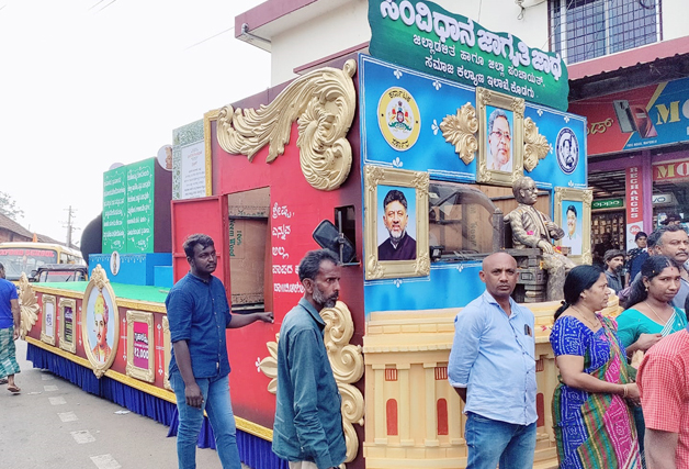 ಇದಕ್ಕೂ ಮುನ್ನ ನಾಪೋಕ್ಲು ಬಸು ನಿಲ್ದಾಣದಲ್ಲಿ ಪಂಚಾಯಿತಿ ಅಧ್ಯಕ್ಷೆ ವನಜಾಕ್ಷಿ, ಸದಸ್ಯರು ಸಂವಿಧಾನ ಜಾಗೃತಿ ಜಾಥಾ ರಥಕ್ಕೆ ಪುಷ್ಪಾರ್ಚನೆ ಮಾಡಿ ಸ್ವಾಗತಿಸಿದರು. ನಂತರ ಸ್ಕೌಟ್ಸ್ ಗೈಡ್ಸ್ ವಾದ್ಯಗೋಷ್ಠಿಯೊಂದಿಗೆ ಮೆರವಣಿಗೆ ಪಟ್ಟಣದ ಮುಖ್ಯಬೀದಿಗಾಗಿ ಪೊಲೀಸ್ ಮೈದಾನಕ್ಕೆ ತೆರಳಿತು.