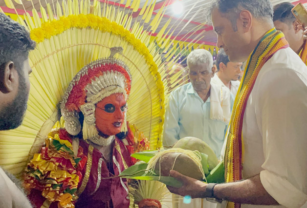 ಮಡಿಕೇರಿ ಮಾ.24 NEWS DESK : ಮುಖ್ಯಮಂತ್ರಿಗಳ ಕಾನೂನು ಸಲಹೆಗಾರ ಹಾಗೂ ವಿರಾಜಪೇಟೆ ಕ್ಷೇತ್ರದ ಶಾಸಕ ಎ.ಎಸ್.ಪೊನ್ನಣ್ಣ ಅವರು ಸಂಪಾಜೆಯ ಚಡಾವು ಸ್ವಾಮಿ ಕೊರಗಜ್ಜ ದೇವಸ್ಥಾನಕ್ಕೆ ಭೇಟಿ ನೀಡಿದರು. ವಿಶೇಷ ಪ್ರಾರ್ಥನೆ ಸಲ್ಲಿಸಿದ ಅವರು ನಾಡಿನ ಜನತೆಗೆ ಒಳಿತಾಗಲಿ ಎಂದು ಕೋರಿದರು. ಇದೇ ಸಂದರ್ಭ ಕೊಯನಾಡಿನ ಸುನ್ನಿ ಮುಸ್ಲಿಂ ಜುಮಾ ಮಸೀದಿಗೆ ಶಾಸಕರು ಭೇಟಿ ನೀಡಿದರು. ಮಸೀದಿ ಹಾಗೂ ನುಸ್ರತುಲ್ ಇಸ್ಲಾಂ ಅಸೋಸಿಯೇಷನ್ ಕೊಯನಾಡು ವತಿಯಿಂದ ಪೊನ್ನಣ್ಣ ಅವರನ್ನು ಸನ್ಮಾನಿಸಿ ಗೌರವಿಸಲಾಯಿತು. ಕಾಂಗ್ರೆಸ್ ಸಾಮಾಜಿಕ ಜಾಲತಾಣದ ಜಿಲ್ಲಾಧ್ಯಕ್ಷ ಸೂರಜ್ ಹೊಸೂರು, ಪ್ರಮುಖರಾದ ಸುರೇಶ್ ಸಂಪಾಜೆ, ಹನೀಫ್ ಕೊಯನಾಡು, ಇಸ್ಮಾಯಿಲ್, ಲವ ಚಿಣ್ಣಪ್ಪ, ಸಂಪನ್ನ ಅಯ್ಯಪ್ಪ ಮತ್ತಿತರರು ಉಪಸ್ಥಿತರಿದ್ದರು.