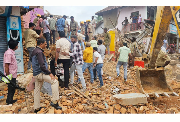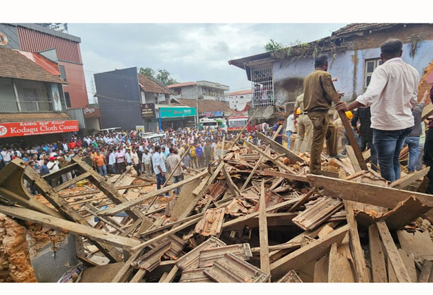 ಮಡಿಕೇರಿ ಜೂ.20 NEWS DESK : ಹಳೆಯ ಕಟ್ಟಡವೊಂದು ಇದ್ದಕ್ಕಿದ್ದಂತೆ ಕುಸಿದು ಬಿದ್ದ ಪರಿಣಾಮ ಹಲವರು ಗಾಯಗೊಂಡಿರುವ ಘಟನೆ ಕೊಡಗು ಜಿಲ್ಲೆಯ ಗೋಣಿಕೊಪ್ಪ ಪಟ್ಟಣದಲ್ಲಿ ನಡೆದಿದೆ. ಇಂದು ಮಧ್ಯಾಹ್ನ ಕಟ್ಟಡ ನೆಲಸಮಗೊಂಡಿದ್ದು, ಅಗ್ನಿಶಾಮಕ ದಳ ಮತ್ತು ಎನ್ಡಿಆರ್ಎಫ್ ಸಿಬ್ಬಂದಿಗಳು ಕಾರ್ಯಾಚರಣೆ ನಡೆಸಿ 7 ಮಂದಿಯನ್ನು ರಕ್ಷಿಸಿದ್ದಾರೆ. ಆರು ಮಂದಿ ಸಣ್ಣಪುಟ್ಟ ಗಾಯಗಳಿಂದ ಪಾರಾಗಿದ್ದು, ತೀವ್ರವಾಗಿ ಗಾಯಗೊಂಡಿರುವ ಒಬ್ಬರನ್ನು ಮೈಸೂರು ಆಸ್ಪತೆಗೆ ಸ್ಥಳಾಂತರಿಸಲಾಗಿದೆ. ಜಿಲ್ಲಾ ಪೊಲೀಸ್ ವರಿಷ್ಠಾಧಿಕಾರಿ ಕೆ.ರಾಮರಾಜನ್, ಗೋಣಿಕೊಪ್ಪ ಪೊಲೀಸ್ ಠಾಣೆಯ ಅಧಿಕಾರಿಗಳು, ಗ್ರಾ.ಪಂ ಪ್ರತಿನಿಧಿಗಳು, ಅಧಿಕಾರಿಗಳು, ಎನ್ಡಿಆರ್ಎಫ್ ಅಧಿಕಾರಿಗಳು ಕಾರ್ಯಾಚರಣೆಗೆ ಸಹಕಾರ ನೀಡಿದರು. ಕಟ್ಟಡದಲ್ಲಿದ್ದ ಮಳಿಗೆಗಳಲ್ಲಿ ಬಿರಿಯಾನಿ ಸೆಂಟರ್ ಮತ್ತು ಮಟನ್ ಸ್ಟಾಲ್ ಕಾರ್ಯನಿರ್ವಹಿಸುತ್ತಿತ್ತು. ಅದೃಷ್ಟವಶಾತ್ ಮಳಿಗೆಗಳಲ್ಲಿ ಇದ್ದವರು ಅಪಾಯದಿಂದ ಪಾರಾಗಿದ್ದಾರೆ.