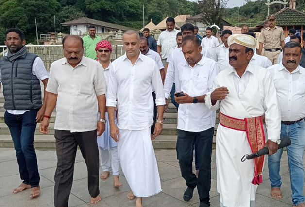 ಮಡಿಕೇರಿ ಜು.9 NEWS DESK : ನಾಡಿನ ಜೀವನದಿ ಕಾವೇರಿ ಉಗಮಸ್ಥಾನ ತಲಕಾವೇರಿ ಹಾಗೂ ಪವಿತ್ರ ಕ್ಷೇತ್ರ ಶ್ರೀಭಗಂಡೇಶ್ವರ ದೇವಾಲಯಕ್ಕೆ ವಿರಾಜಪೇಟೆ ವಿಧಾನಸಭಾ ಕ್ಷೇತ್ರದ ಶಾಸಕರು ಹಾಗೂ ಮುಖ್ಯಮಂತ್ರಿ ಅವರ ಕಾನೂನು ಸಲಹೆಗಾರರಾದ ಎ.ಎಸ್.ಪೊನ್ನಣ್ಣ ಮತ್ತು ಕುಟುಂಬದವರು ಮಂಗಳವಾರ ಭೇಟಿ ನೀಡಿ, ವಿಶೇಷ ಪೂಜೆ ಸಲ್ಲಿಸಿದರು.
