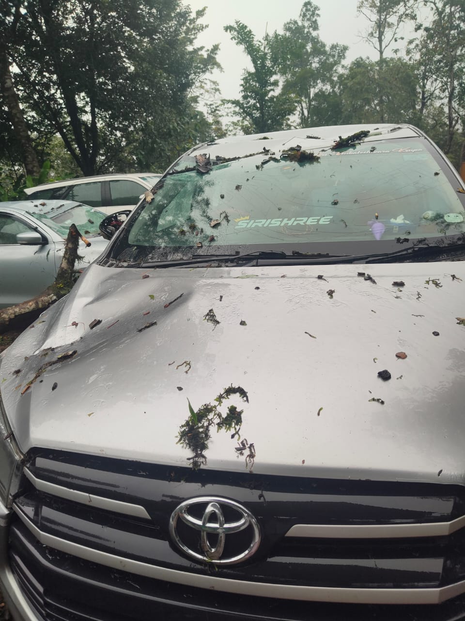 ಮಡಿಕೇರಿ ಜು.14 NEWS DESK : ಕೊಡಗು ಜಿಲ್ಲೆಯಲ್ಲಿ ಗಾಳಿ ಸಹಿತ ಧಾರಾಕಾರ ಮಳೆಯಾಗುತ್ತಿದೆ. ಭಾರೀ ಗಾಳಿಗೆ ಮರದ ಕೊಂಬೆ ಬಿದ್ದು ಸುಮಾರು ಆರು ಕಾರುಗಳು ಜಖಂಗೊಂಡಿವೆ. ವಿವಿಧೆಡೆ ಮನೆಗಳಿಗೆ ಹಾನಿಯಾಗಿದೆ, ಮರಗಳು, ವಿದ್ಯುತ್ ಕಂಬಗಳು ಬಿದ್ದಿವೆ. ವಿದ್ಯುತ್ ತಂತಿ ಬಿದ್ದು ಹಸುವೊಂದು ಮೃತಪಟ್ಟಿದೆ. ಜಿಲ್ಲೆಯ ಎಲ್ಲಾ ಶಾಲಾ ಕಾಲೇಜುಗಳಿಗೆ ಜು.15 ರಂದು ರಜೆ ಘೋಷಿಸಲಾಗಿದೆ. ಕಳೆದೆರಡು ದಿನಗಳಿಂದ ಶಾಂತವಾಗಿದ್ದ ಮಳೆ ಭಾನುವಾರದಿಂದ ಮತ್ತೆ ತೀವ್ರತೆಯನ್ನು ಪಡೆದುಕೊಂಡಿದೆ. ಗಾಳಿ ಸಹಿತ ಮಳೆಯಾಗುತ್ತಿರುವುದರಿಂದ ಸಾರ್ವಜನಿಕ ಆಸ್ತಿಪಾಸ್ತಿಗೆ ಹಾನಿಯಾಗಿದೆ. ಮಡಿಕೇರಿ ತಾಲ್ಲೂಕಿನಲ್ಲಿ ನಿರಂತರ ಮಳೆಯಾಗುತ್ತಿದ್ದು, ಬೆಟ್ಟಗುಡ್ಡದ ಮೇಲೆ ಮತ್ತು ತಗ್ಗು ಪ್ರದೇಶಗಳಲ್ಲಿ ವಾಸಿಸುತ್ತಿರುವ ಜನರಲ್ಲಿ ಆತಂಕ ಮನೆ ಮಾಡಿದೆ. ಮಡಿಕೇರಿ ನಗರದಿಂದ ಗಾಳಿಬೀಡು ಗ್ರಾಮಕ್ಕೆ ಸಂಪರ್ಕ ಕಲ್ಪಿಸುವ ರಸ್ತೆಯಲ್ಲಿ ಮರಗಳು ಮತ್ತು ವಿದ್ಯುತ್ ಕಂಬಗಳು ಬಿದ್ದಿವೆ. ಚೆಸ್ಕಾಂ ಹಾಗೂ ಅರಣ್ಯ ಇಲಾಖೆ ಸಿಬ್ಬಂದಿಗಳು ತೆರವು ಕಾರ್ಯಾಚರಣೆ ನಡೆಸಿದರು. ಭಾರೀ ಗಾಳಿಗೆ ಮರದ ಕೊಂಬೆ ಬಿದ್ದು ಆರು ಕಾರುಗಳು ಜಖಂಗೊಂಡಿರುವ ಘಟನೆ ಸೋಮವಾರಪೇಟೆಯ ರೆಸಾರ್ಟ್ವೊಂದರ ಸಮೀಪ ನಡೆದಿದೆ. ಪ್ರವಾಸಿಗರು ಹಾಗೂ ಟ್ಯಾಕ್ಸಿ ಚಾಲಕರು ಪಾರ್ಕಿಂಗ್ ಸ್ಥಳದಲ್ಲಿ ವಾಹನ ನಿಲುಗಡೆಗೊಳಿಸಿದ್ದಾಗ ಈ ಅವಘಡ ಸಂಭವಿಸಿದೆ. ಅದೃಷ್ಟವಶಾತ್ ಸ್ಥಳದಲ್ಲಿದ್ದವರು ಅಪಾಯದಿಂದ ಪಾರಾಗಿದ್ದಾರೆ. ಗಾಳಿಯ ರಭಸಕ್ಕೆ ವಿದ್ಯುತ್ ತಂತಿ ತುಂಡಾಗಿ ಬಿದ್ದು, ವಿದ್ಯುತ್ ಪ್ರವಹಿಸಿ 3 ತಿಂಗಳ ಗಬ್ಬದ ಹಸು ಸಾವಿಗೀಡಾಗಿರುವ ಘಟನೆ ಸೋಮವಾರಪೇಟೆ ಸಮೀಪದ ಚೌಡ್ಲು ಗ್ರಾಮದಲ್ಲಿ ನಡೆದಿದೆ. ಸ್ಥಳೀಯ ನಿವಾಸಿ ಸುರೇಶ್ ಎಂಬುವವರಿಗೆ ಸೇರಿದ ಹಸು ಇದಾಗಿದೆ. ಶನಿವಾರಸಂತೆ ಹೋಬಳಿಯ ಗೌಡಳ್ಳಿ ಗ್ರಾ.ಪಂ ವ್ಯಾಪ್ತಿಯ ಚನ್ನಾಪುರ ಗ್ರಾಮದ ನಿವಾಸಿ ಲಕ್ಷ್ಮೀ ಎಂಬುವವರಿಗೆ ಸೇರಿದ ಮನೆಗೆ ಮಳೆಯಿಂದ ಭಾಗಶಃ ಹಾನಿಯಾಗಿದೆ. ಕುಶಾಲನಗರ ತಾಲ್ಲೂಕಿನ ಗುಡ್ಡೆಹೊಸೂರು ಗ್ರಾ.ಪಂ ವ್ಯಾಪ್ತಿಯ ಅತ್ತೂರು ಗ್ರಾಮದಲ್ಲಿ ಜನಾರ್ಧನ್ ಎಂಬುವವರ ಮನೆಯ ಗೋಡೆ ಕುಸಿದು ಬಿದ್ದಿದೆ. ಕುಶಾಲನಗರ ತಾಲ್ಲೂಕು ತಹಶೀಲ್ದಾರ್ ಕಿರಣ್ ಗೌರಯ್ಯ, ಗುಡ್ಡೆಹೊಸೂರು ಗ್ರಾ.ಪಂ ಅಧಿಕಾರಿ ಸುಮೇಶ್, ಕಂದಾಯ ನಿರೀಕ್ಷಕ ಸಂತೋಷ್ ಹಾಗೂ ಗ್ರಾಮ ಲೆಕ್ಕಾಧಿಕಾರಿ ಗೌತಮ್ ಸ್ಥಳಕ್ಕೆ ಭೇಟಿ ನೀಡಿ ಪರಿಶೀಲಿಸಿದರು.
