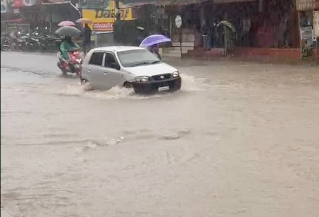 ವಿರಾಜಪೇಟೆ NEWS DESK ಜು.29 : ಕೊಂಚ ಬಿಡುವು ನೀಡಿದ್ದ ಮಳೆ ಸೋಮವಾರ ಧಾರಾಕಾರವಾಗಿ ಸುರಿದ ಪರಿಣಾಮ ವಿರಾಜಪೇಟೆ ಗೋಣಿಕೊಪ್ಪ ರಸ್ತೆಯ ರಾಜ ಕಾಲುವೆ ಬಳಿ ಪ್ರವಾಹ ಸದೃಶ್ಯ ಕಂಡು ಬಂತು. ಮತ್ತೆ ಮಳೆನೀರು ಮುಖ್ಯ ರಸ್ತೆಯನ್ನು ಆವರಿಸಿತು. ವಿರಾಜಪೇಟೆ ಖಾಸಗಿ ಬಸ್ ನಿಲ್ದಾಣ, ಅರಸು ನಗರ, ಮಟನ್ ಮಾರ್ಕೆಟ್, ಸುಭಾಷ್ ನಗರ, ವಿಜಯನಗರ , ಚೌಕಿ. ಮುಂತಾದ ಕಡೆಗಳಿಂದ ಮಳೆ ನೀರು ಹರಿದು ಇದೇ ಕಾಲುವೆಯನ್ನು ಸೇರುತ್ತದೆ. ವಿದ್ಯಾರ್ಥಿಗಳು ಹಾಗೂ ಪಾದಾಚಾರಿಗಳು ಮಳೆ ಮತ್ತು ಪ್ರವಾಹದ ರೀತಿಯ ನೀರಿನಿಂದ ಪರದಾಡುವಂತ್ತಾಯಿತು. ಮುಂದಿನ ದಿನಗಳಲ್ಲಿ ಈ ರೀತಿಯ ಪರಿಸ್ಥಿತಿ ಉದ್ಭವಿಸದಂತೆ ಆಡಳಿತ ವ್ಯವಸ್ಥೆ ಕ್ರಮ ಕೈಗೊಳ್ಳಬೇಕು ಎಂದು ಸ್ಥಳೀಯರು ಒತ್ತಾಯಿಸಿದ್ದಾರೆ.