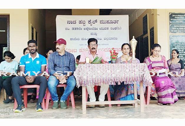 ಬಲ್ಲಮಾವಟಿ :: ಸಮೀಪದ ಬಲ್ಲಮಾವಟಿ ಗ್ರಾಮದ ಅಪೋಲೋ ಯುವಕ ಸಂಘ ಮತ್ತು ಕಾವೇರಿ ಮಹಿಳಾ ಸಮಾಜದ ಸಂಯುಕ್ತ ಆಶ್ರಯದಲ್ಲಿ ನಾಡಹಬ್ಬ ಕೈ ಮುಹೂರ್ತ ಪ್ರಯುಕ್ತ ಆಟೋಟ ಕೂಟ ಜರುಗಿತು. ನೇತಾಜಿ ಪ್ರೌಢಶಾಲೆಯ ಆಟದ ಮೈದಾನದಲ್ಲಿ ಆಯೋಜಿಸಲಾಗಿದ್ದ ಕಾರ್ಯಕ್ರಮದಲ್ಲಿ ಗ್ರಾ.ಪಂ ಸದಸ್ಯ ಮುಕ್ಕಾಟಿರ ಕೆ.ಸುತನ್ ಸುಬ್ಬಯ್ಯ ಶಿಕ್ಷಕಿ ಮೂವೆರ ಕಾವೇರಮ್ಮ ಮುಖ್ಯ ಅತಿಥಿಗಳಾಗಿ ಪಾಲ್ಗೊಂಡಿದ್ದರು. ರಾಷ್ಟ್ರೀಯ ಹಾಕಿ ತೀರ್ಪುಗಾರರಾದ ಅಪ್ಪಚೆಟ್ಟೋಳಂಡ ಬಿ.ಹರ್ಷಿತ್ ಐಯ್ಯಪ್ಪ ಅವರನ್ನು ಕಾರ್ಯಕ್ರಮದಲ್ಲಿ ಸನ್ಮಾನಿಸಲಾಯಿತು. ವಿವಿಧ ಕ್ರೀಡಾ ಸ್ಪರ್ಧೆಗಳಲ್ಲಿ ಗ್ರಾಮಸ್ಥರು ಪಾಲ್ಗೊಂಡಿದ್ದರು.