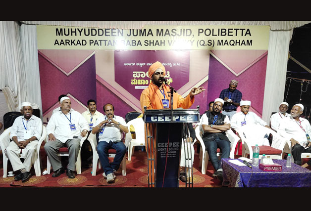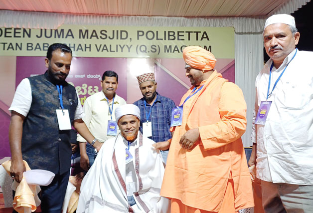 ರಾಜಕೀಯ ಲಾಭಕ್ಕಾಗಿ ಮಂದಿರ ಮಸೀದಿಗಳನ್ನು ಬಳಸಿಕೊಂಡು ಕೋಮು ಭಾವನೆಗಳೊಂದಿಗೆ ಅಶಾಂತಿ ಸೃಷ್ಟಿಸಲು ಮುಂದಾಗುತ್ತಿರುವುದು ವಿಷಾದನೀಯ. ಈ ಜಗತ್ತಿನಲ್ಲಿ ಸರ್ವಧರ್ಮೀಯರು ಒಂದಾಗಿ ಜೀವನ ನಡೆಸುತ್ತಿರುವ ದೇಶ ಭಾರತವಾಗಿದೆ. ಸೂಫಿ ಸಂತರ ಶರಣರ ಋಷಿಮುನಿಗಳ ಇತಿಹಾಸ ಈ ಭಾರತದಲ್ಲಿದೆ ಸ್ವಾತಂತ್ರ್ಯ ಸಂಗ್ರಾಮದಲ್ಲಿ ಎಲ್ಲಾ ಧರ್ಮಿಯರು ಒಗ್ಗೂಡಿ ಭವಿಷ್ಯದ ದೇಶವನ್ನು ಕಟ್ಟಿದ್ದಾರೆ. ಸೂಫಿ ಸಂತರು ಶರಣರು ಒಟ್ಟಾಗಿ ಜೀವನ ಮಾಡುತ್ತಿದ್ದರು. ಹಾಗಾಗಿ ಎಲ್ಲಾ ಆಚರಣೆಗಳು ಸೌಹಾರ್ದತವಾಗಿಯೇ ನಡೆಯುತ್ತಿತ್ತು. ಇಂದು ಒಂದು ವರ್ಗವನ್ನೇ ದ್ವೇಷಿಸುವ ಮೂಲಕ ಅವರ ಹಕ್ಕುಗಳನ್ನ ಕಸಿದುಕೊಳ್ಳುವ ಪ್ರಯತ್ನ ನಡೆಯುತ್ತಿದೆ. ಭಾರತ ಸಂವಿಧಾನದ ಆಸೆಯದಂತೆ ಪ್ರತಿಯೊಬ್ಬರು ತಮ್ಮದೇ ಆದ ಬದುಕನ್ನ ಕಟ್ಟಿಕೊಂಡು ಮುನ್ನಡೆಯುತ್ತಿದ್ದು ಆಚಾರ ವಿಚಾರ ಸಂಸ್ಕೃತಿ ಪರಂಪರೆಯೊಂದಿಗೆ ಜೀವನ ನಡೆಸುತ್ತಿದ್ದು, ನಾವೆಲ್ಲರೂ ಒಗ್ಗಟ್ಟಿನ ಮೂಲಕ ಸೌಹಾರ್ದ ಸಮಾಜ ನಿರ್ಮಾಣ ಮಾಡಲು ಮುಂದಾಗ ಬೇಕಾಗಿದೆ ಎಂದರು. ಸಮಸ್ತ ಕೇಂದ್ರ ಮುಶಾವರ ಸದಸ್ಯ ಹಾಗೂ ಕೊಡಗು ಜಿಲ್ಲಾ ಖಾಝಿ ಎಂ.ಎಂ.ಅಬ್ದುಲ್ಲ ಫೈಜಿ ಮಾತನಾಡಿ ಧಾರ್ಮಿಕ ಕೇಂದ್ರಗಳು ಸೌಹಾರ್ದತೆಯ ಸಂಕೇತದ ಮೂಲಕ ಭಾವೈಕ್ಯತೆಯ ಕೇಂದ್ರಗಳಿಗೆ ಎಲ್ಲರೂ ಪಾಲ್ಗೊಳ್ಳುತ್ತಿರುವುದರಿಂದಲೇ ಗ್ರಾಮಗಳಲ್ಲಿ ಸೌಹಾರ್ದ ಸಮಾಜ ನಿರ್ಮಾಣವಾಗುತ್ತಿದೆ. ನಾವೆಲ್ಲರೂ ಪರಸ್ಪರ ಸ್ನೇಹ ಭಾವನೆಯೊಂದಿಗೆ ಆಚಾರ ವಿಚಾರ ಸಂಸ್ಕೃತಿ ಪರಂಪರೆಯೊಂದಿಗೆ ಸೌಹಾರ್ದತವಾಗಿ ಮುನ್ನಡೆಯಬೇಕಾಗಿದೆ ಎಂದರು. ಜುಮಾ ಮಸೀದಿಯ ಅಧ್ಯಕ್ಷ ಪಿ.ಕೆ ಇಸ್ಮಾಯಿಲ್ ಹಾಜಿ ಅವರ ಅಧ್ಯಕ್ಷತೆಯಲ್ಲಿ ನಡೆದ ಸಮಾರಂಭದಲ್ಲಿ ಮಾಜಿ ಜಿಲ್ಲಾ ಪಂಚಾಯಿತಿ ಸದಸ್ಯ ಮೂಕೊಂಡ ವಿಜು ಸುಬ್ರಮಣಿ, ಪಾಲಿಬೆಟ್ಟ ವಿ ಎಸ್ ಎಸ್ ಎನ್ ಅಧ್ಯಕ್ಷ ಅಜಿತ್ ಕರುಂಬಯ್ಯ, ವಕ್ಫ್ ಬೋರ್ಡ್ ಜಿಲ್ಲಾ ಅಧ್ಯಕ್ಷ ಪಿ.ಎಂ.ಹಕೀಂ ಮಾಜಿ ಅಧ್ಯಕ್ಷ ಕೆ ಎ ಯಾಕುಬ್, ಮಾಜಿ ಜಿಲ್ಲಾ ಪಂಚಾಯತಿ ಸದಸ್ಯ ಪಿ ಎಂ ಅಬ್ದುಲ್ ಲತೀಪ್, ಗ್ರಾಮ ಪಂಚಾಯತಿ ಸದಸ್ಯರಾದ ಅಬ್ದುಲ್ ನಾಸರ್, ವೆಂಕಟೇಶ್, ಜುಮಾ ಮಸೀದಿ ಕಮಿಟಿ ಉಪಾಧ್ಯಕ್ಷ ಸೈನುದ್ದೀನ್, ಕಾರ್ಯದರ್ಶಿ ಸಮೀರ್ ಮುನ್ನ, ಸಹ ಕಾರ್ಯದರ್ಶಿ ಫಜಲ್ ರೆಹಮಾನ್, ಪಂಚಾಯಿತಿ ಅಭಿವೃದ್ಧಿ ಅಧಿಕಾರಿ ವಿಶ್ವನಾಥ್, ಜುಮಾ ಮಸೀದಿ ಖತೀಬ್ ಜುಬೇರ್ ಸಖಾಫಿ, ಸೇರಿದಂತೆ ಮತ್ತಿತರರು ಹಾಜರಿದ್ದರು . ಜಿಲ್ಲೆ, ರಾಜ್ಯದ ನಾನಾ ಭಾಗಗಳಿಂದ ಆಗಮಿಸಿದ ಭಕ್ತರಿಗೆ ಅನ್ನ ಸಂತರ್ಪಣಾ ಕಾರ್ಯ ಮಾಡಲಾಯಿತು. ಡಿವೈಎಸ್ಪಿ ಸೂರಜ್, ಸರ್ಕಲ್ ಇನ್ಸ್ಪೆಕ್ಟರ್ ಪಿ.ಕೆ.ರಾಜು,
