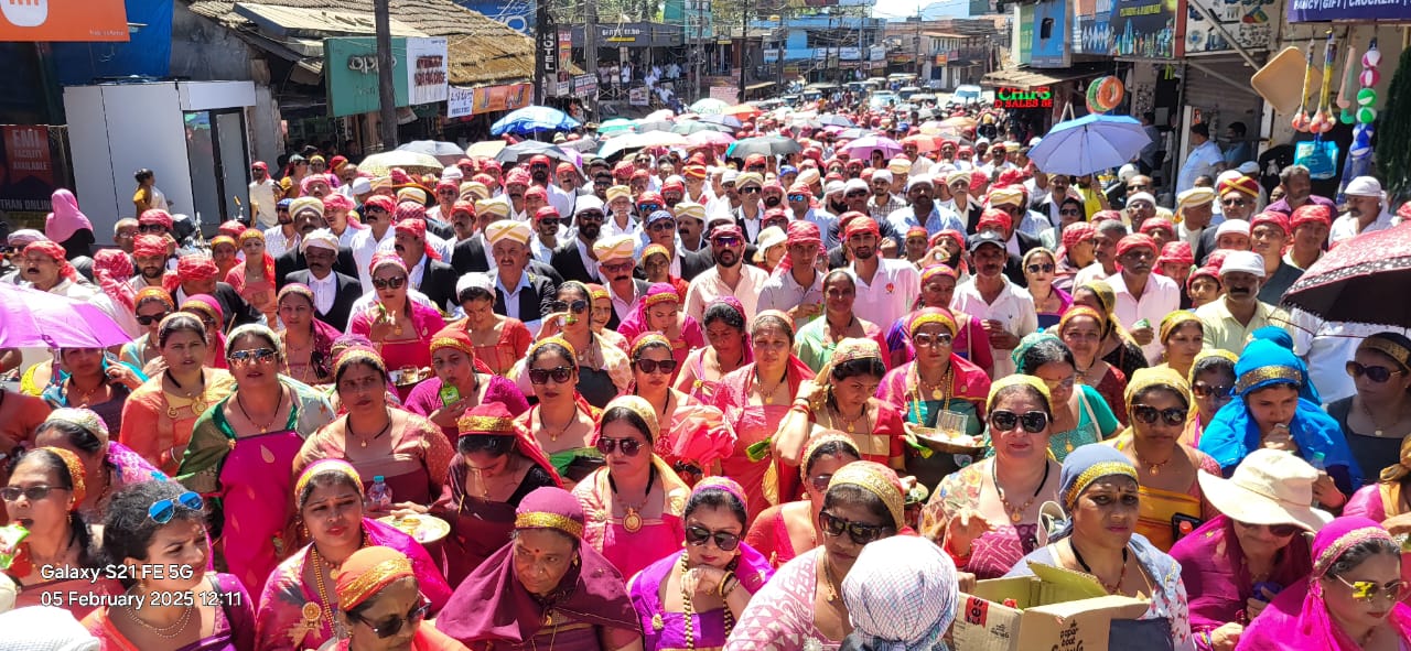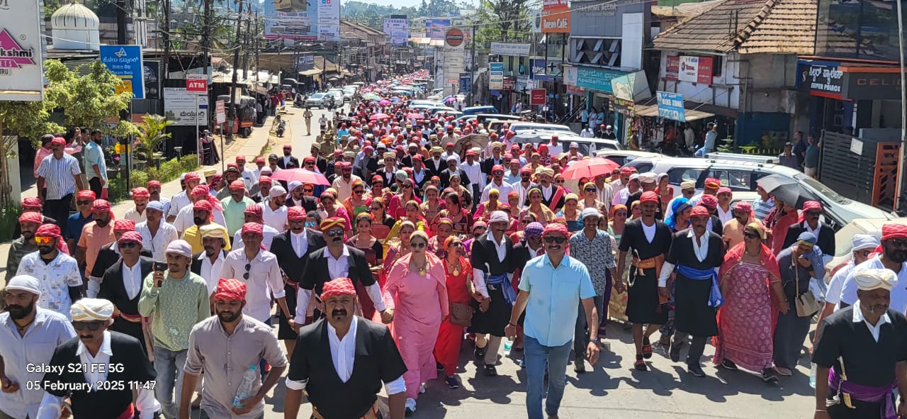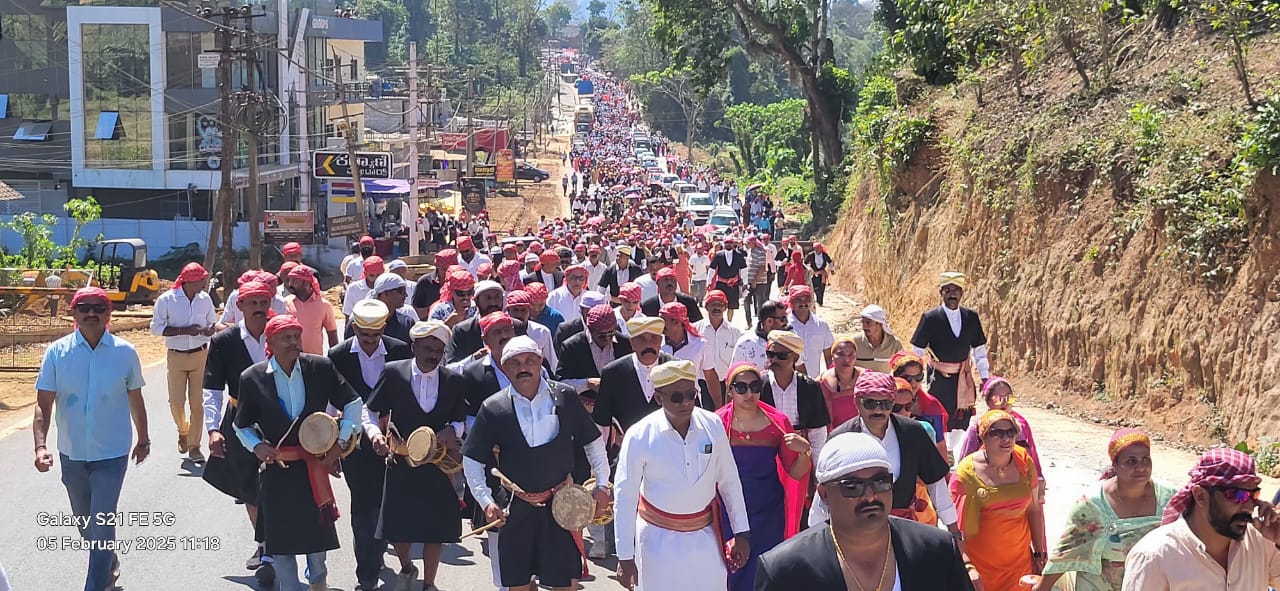 ಮಡಿಕೇರಿ ಫೆ.5 NEWS DESK : ಕೊಡಗಿನ ಕೊಡವರು ಹಾಗೂ ಕೊಡವ ಭಾಷಿಕ ಸಮುದಾಯದ ವಿಶಿಷ್ಟ, ಸಂಸ್ಕೃತಿ ಮತ್ತು ಪರಂಪರೆಗಳ ಸಂರಕ್ಷಣೆಯ ಮುಖ್ಯ ಧ್ಯೇಯದೊಂದಿಗೆ ದಕ್ಷಿಣ ಕೊಡಗಿನ ಕುಟ್ಟದಿಂದ ಆರಂಭಗೊಂಡಿರುವ ‘ಬಾಳೋ ಕೊಡವಾಮೆ’ ಬೃಹತ್ ಪಾದಯಾತ್ರೆ ನಾಲ್ಕನೇ ದಿನವೂ ಭಾರೀ ಜನಸ್ತೋಮದೊಂದಿಗೆ ಮಡಿಕೇರಿ ತಾಲ್ಲೂಕು ಗಡಿ ಬೇತ್ರಿಯನ್ನು ತಲುಪಿತು. ಅಖಿಲ ಕೊಡವ ಸಮಾಜದ ನೇತೃತ್ವದಲ್ಲಿ ನಡೆಯುತ್ತಿರುವ ಪಾದಯಾತ್ರೆ ಇಂದು ಬೆಳಗ್ಗೆ ಬಿಟ್ಟಂಗಾಲದ ಹೆಗ್ಗಡೆ ಸಮಾಜದಿಂದ ಆರಂಭಗೊಂಡಿತು. ಸಹಸ್ರಾರು ಸಂಖ್ಯೆಯ ಸಮುದಾಯ ಬಾಂಧವರು ಸಾಂಪ್ರದಾಯಿಕ ಉಡುಪಿನೊಂದಿಗೆ ಅತ್ಯಂತ ಶಿಸ್ತುಬದ್ಧವಾಗಿ ಜಾಥದಲ್ಲಿ ಪಾಲ್ಗೊಳ್ಳುವ ಮೂಲಕ ಗಮನ ಸೆಳೆದರು. ನಾಲ್ಕನೇ ದಿನದ ಪಾದಯಾತ್ರೆ ಬಿಟ್ಟಂಗಾಲದಿಂದ ತಾಲ್ಲೂಕು ಕೇಂದ್ರ ವಿರಾಜಪೇಟೆ ಮೂಲಕ ಕದನೂರು, ಕಾಕೋಟುಪರಂಬುವನ್ನು ಹಾದು ಸಂಜೆ ಬೇತ್ರಿ ಗ್ರಾಮದಲ್ಲಿ ಕೊನೆಗೊಂಡಿತು. ಬೇತ್ರಿಯ ಕಾವೇರಿ ನದಿಗೆ ಅಡ್ಡಲಾಗಿ ಇರುವ ಸೇತುವೆಯಲ್ಲಿ ದಕ್ಷಿಣ ಕೊಡಗಿನಿಂದ ಆರಂಭಗೊಂಡ ಜಾಥವನ್ನು ಮಡಿಕೇರಿ ತಾಲ್ಲೂಕಿನ ಕೊಡವ ಸಮುದಾಯ ಬಾಂಧವರು ಸ್ವಾಗತಿಸಿದರು. ಪಾದಯಾತ್ರೆಯ ಮೂಲಕ ಕೊಡವ ಸಮುದಾಯ ಬಾಂಧವರು ತಮ್ಮ ಜನಾಂಗದ ಅಸ್ತಿತ್ವ ಮತ್ತು ಭದ್ರತೆಗೆ ಅಗತ್ಯ ಕ್ರಮಗಳನ್ನು ಕೈಗೊಳ್ಳುವ ನಿಟ್ಟಿನಲ್ಲಿ ಸರ್ಕಾರದ ಗಮನ ಸೆಳೆಯುವ ಪ್ರಯತ್ನ ಮಾಡಿದರು. ಒಟ್ಟು 82 ಕಿ.ಮೀ.ಗಳಲ್ಲಿ ಇಲ್ಲಿಯವರೆಗೆ 42 ಕಿ.ಮೀ. ಪಾದಯಾತ್ರೆ ಪೂರ್ಣಗೊಂಡಿದೆ. ಪಾದಯಾತ್ರೆ 5ನೇ ದಿನದಂದು ಬೇತ್ರಿಯಿಂದ ಆರಂಭಗೊಂಡು ಮೂರ್ನಾಡು, ಹಾಕತ್ತೂರು, ಕಗ್ಗೋಡ್ಲು ಮಾರ್ಗವಾಗಿ ಮೇಕೇರಿ ಗ್ರಾಮವನ್ನು ತಲುಪಲಿದೆ. ಆರನೇ ಹಾಗೂ ಕೊನೆಯ ದಿನವಾದ ಫೆ.7 ರಂದು ಬೆಳಗ್ಗೆ ಮೇಕೇರಿಯಿಂದ ಮಡಿಕೇರಿಗೆ ಆಗಮಿಸಲಿದೆ. ಬಳಿಕ ನಗರದ ಜ.ತಿಮ್ಮಯ್ಯ ಮೈದಾನದ ಆವರಣದಲ್ಲಿರುವ ಮಂದ್ನಲ್ಲಿ ಜಿಲ್ಲಾಡಳಿತದ ಮೂಲಕ ಸರ್ಕಾರಕ್ಕೆ ಮನವಿ ಸಲ್ಲಿಕೆಯೊಂದಿಗೆ ಸಮಾರೋಪಗೊಳ್ಳಲಿದೆ.
