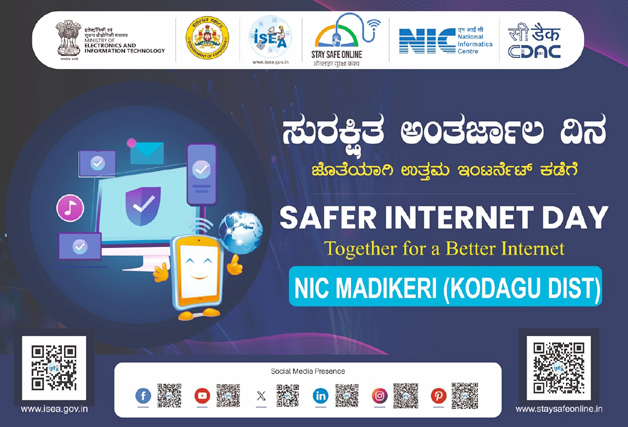 ಮಡಿಕೇರಿ ಫೆ.13 NEWS DESK : ಜಿಲ್ಲಾಧಿಕಾರಿ ಕಚೇರಿಯಲ್ಲಿ ಸುರಕ್ಷಿತ ಅಂತರ್ಜಾಲ ದಿನ (safer internet day) ಕಾರ್ಯಕ್ರಮ ನಡೆಯಿತು. ಕಾರ್ಯಕ್ರಮವನ್ನು ಹೆಚ್ಚುವರಿ ಜಿಲ್ಲಾಧಿಕಾರಿ ಆರ್.ಐಶ್ವರ್ಯ ಉದ್ಘಾಟಿಸಿ ಮಾತನಾಡಿ, ಸುರಕ್ಷಿತ ಅಂತರ್ಜಾಲ ದಿನದ ಬಗ್ಗೆ ಮಾಹಿತಿಯನ್ನು ನೀಡಿದರು. ಎನ್ಐಸಿ ಅಧಿಕಾರಿಗಳಾದ ಸಿಂಧೂರ ತಳವಾರ ಅವರು ಸುರಕ್ಷಿತ ಇಂಟರ್ನೆಟ್ ಬಳಕೆ ಹಾಗೂ ಉಪಯೋಗದ ಬಗ್ಗೆ ಮಾತನಾಡಿದರು. ಜಿಲ್ಲೆಯ ಅಧಿಕಾರಿಗಳು ಹಾಗೂ ಆಡಳಿತ ಸಿಬ್ಬಂದಿಗಳು ಮತ್ತು ಎನ್ಐಸಿ ಸಿಬ್ಬಂದಿಗಳು ಪಾಲ್ಗೊಂಡಿದ್ದರು.