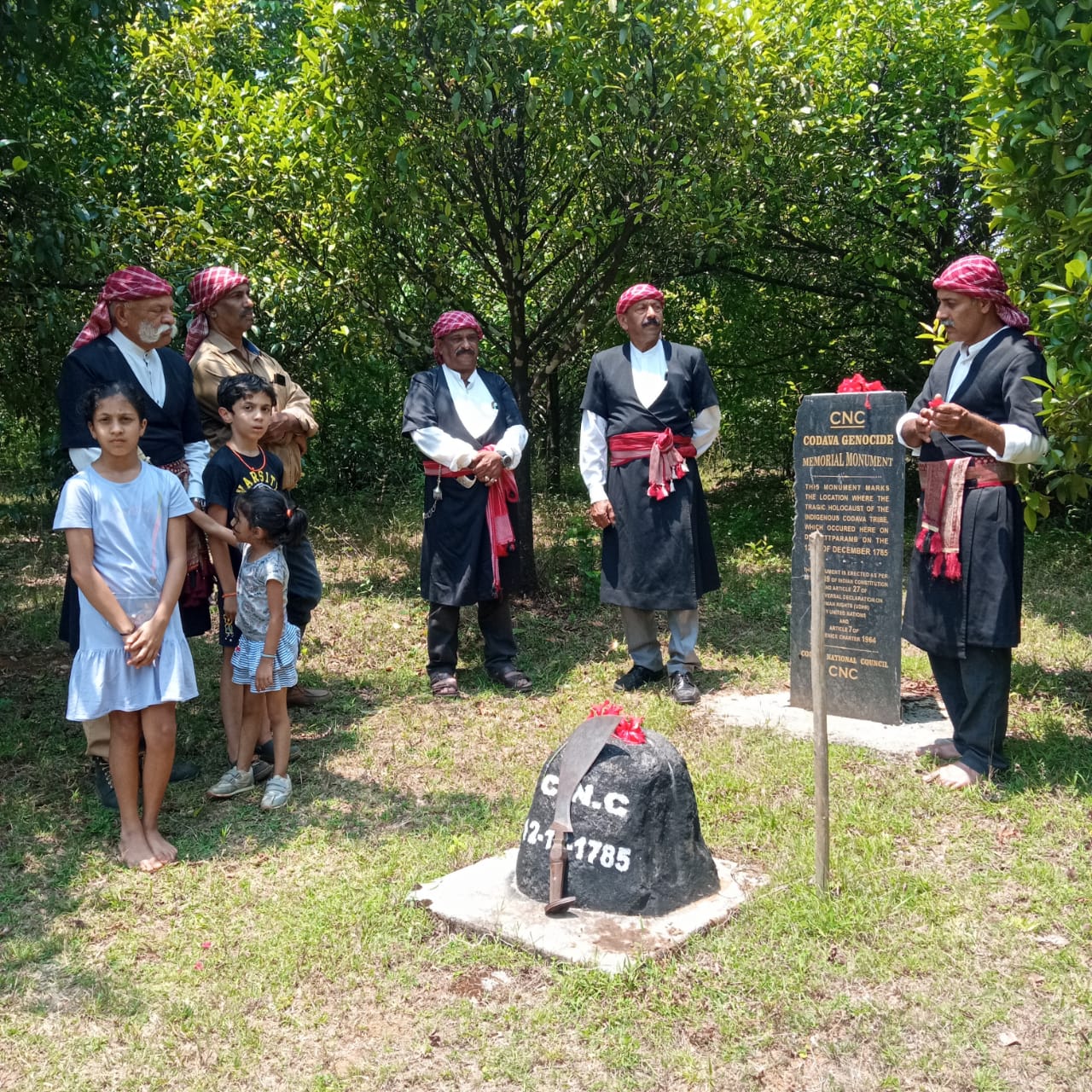 ಮಡಿಕೇರಿ NEWS DESK ಏ.17 : ಕೊಡವ ಹೊಸ ವರ್ಷಾಚರಣೆ ಎಡ್ಮ್ಯಾರ್ ಒಂದ್ ರ ಪ್ರಯುಕ್ತ ಕೊಡವ ನ್ಯಾಷನಲ್ ಕೌನ್ಸಿಲ್ ಸಂಘಟನೆ ಕೊಡವ ನರಮೇಧದ ದೇವಟ್ ಪರಂಬು ಸ್ಮಾರಕ ಸ್ಥಳದಲ್ಲಿ ಹಿರಿಯರಿಗೆ ಪುಷ್ಪ ನಮನ ಸಲ್ಲಿಸಿತು. ಸಿಎನ್ಸಿ ಅಧ್ಯಕ್ಷ ಎನ್.ಯು.ನಾಚಪ್ಪ ಅವರ ನೇತೃತ್ವದಲ್ಲಿ ಹಿರಿಯರನ್ನು ಸ್ಮರಿಸಿ ಗೌರವ ಅರ್ಪಿಸಿದ ಸದಸ್ಯರು ದೇವಟ್ ಪರಂಬುವಿನಲ್ಲಿ ಅಂತರಾಷ್ಟ್ರೀಯ ಕೊಡವ ನರಮೇಧದ ಸ್ಮಾರಕವನ್ನು ಸ್ಥಾಪಿಸಬೇಕೆಂದು ಒತ್ತಾಯಿಸಿದರು. ಎನ್.ಯು.ನಾಚಪ್ಪ ಅವರು ಮಾತನಾಡಿ ಟಿಪ್ಪುವಿನ ಆಕ್ರಮಣಗಳಿಂದ ಕೊಡವ ವೀರ ಯೋಧರು ರಾಜ್ಯವನ್ನು 32 ಕ್ಕೂ ಹೆಚ್ಚು ಬಾರಿ ರಕ್ಷಿಸಿದರು. ತನ್ನ ಪುನರಾವರ್ತಿತ ಸೋಲುಗಳಿಗೆ ಸೇಡು ತೀರಿಸಿಕೊಳ್ಳುವ ಪ್ರಯತ್ನವಾಗಿ ಟಿಪ್ಪು ಶಾಂತಿಸಭೆಯ ಸಂಚು ಹೂಡಿ ಕೊಡವರ ನಾಶಕ್ಕೆ ಕಾರಣನಾದನು. ಇಂದು ಉಳಿದಿರುವ ಆದಿಮಸಂಜಾತ ಕೊಡವ ಜನಾಂಗದ ಸಮಗ್ರ ಸಬಲೀಕರಣಕ್ಕೆ ಮತ್ತು ಕೊಡವ ಲ್ಯಾಂಡ್ ಭೂರಾಜಕೀಯ ಸ್ವಾಯತ್ತತೆಯನ್ನು ಪಡೆಯಲು ಹಿರಿಯರ ಆಶೀರ್ವಾದ ಪಡೆಯಲಾಯಿತು ಎಂದರು. ಕೊಡವ ನರಮೇಧದ ದೇವಟ್ ಪರಂಬುವಿನಲ್ಲಿ ಅಂತರಾಷ್ಟ್ರೀಯ ಸ್ಮಾರಕ, ನಾಲ್ನಾಡ್ ಅರಮನೆ ಮತ್ತು ಮಡಿಕೇರಿ ಕೋಟೆಯಲ್ಲಿ ಸ್ಮಾರಕಗಳನ್ನು ಸ್ಥಾಪಿಸಬೇಕು. ದೇವಟ್ ಪರಂಬು, ನಾಲ್ನಾಡ್ ಅರಮನೆ ಮತ್ತು ಮಡಿಕೇರಿ ಕೋಟೆಯಲ್ಲಿ ನಡೆದ ಕೊಡವ ಜನಾಂಗೀಯ ಸಮುದಾಯದ ಸದಸ್ಯರ ರಾಜಕೀಯ ಹತ್ಯೆಗಳನ್ನು ಅಂತರಾಷ್ಟ್ರೀಯ ಸ್ಮರಣೆಯ ಪಟ್ಟಿಯಲ್ಲಿ ಸೇರಿಸಬೇಕು ಎಂದು ಆಗ್ರಹಿಸಿದರು. ಕುಮಾರಿ ಕಲ್ಯಂಡ ಧನ್ವಿ, ಕುಮಾರಿ ಕಲಿಯಂಡ ವಿಹಾನ, ಹಿರಿಯರಾದ ಕಲಿಯಂಡ ಪ್ರಕಾಶ್, ಪಟ್ಟಮಾಡ ಕುಶ, ಮಂದಪಂಡ ಮನೋಜ್, ಪುಟ್ಟಿಚಂಡ ಡಾನ್, ಮುಕ್ಕಾಟಿರ ಅಶ್ವತ್ಥ್, ಕಲಿಯಂಡ ತಿಮ್ಮಯ್ಯ ಶ್ರದ್ಧಾಂಜಲಿ ಕಾರ್ಯಕ್ರಮದಲ್ಲಿ ಪಾಲ್ಗೊಂಡು ಪುಷ್ಪನಮನ ಸಲ್ಲಿಸಿದರು.