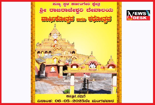 ಮಡಿಕೇರಿ ಮೇ 5 NEWS DESK : ನಗರದಂಚಿನಲ್ಲಿರುವ ಕರ್ಣಂಗೇರಿ ಕ್ಷೇತ್ರದ ಶ್ರೀ ರಾಜರಾಜೇಶ್ವರಿ ದೇವಾಲಯದ ವಾರ್ಷಿಕೋತ್ಸವ ಹಾಗೂ ರಥೋತ್ಸವವು ಮೇ 6 ರಂದು ವಿವಿಧ ಪೂಜಾ ಕೈಂಕರ್ಯಗಳೊಂದಿಗೆ ಜರುಗಲಿದೆ. ಅಂದು ಬೆಳಿಗ್ಗೆ 6 ಗಂಟೆಗೆ ದೇವಾಲಯದಲ್ಲಿ ಧ್ವಜಾರೋಹಣದ ಮೂಲಕ ಪೂಜಾ ಕಾರ್ಯಕ್ರಮಕ್ಕೆ ಚಾಲನೆ ದೊರೆಯಲಿದೆ. 6.30 ಗಂಟೆಗೆ ಗಣಪತಿ ಹೋಮ, 7.30ಕ್ಕೆ ದೇವಿಗೆ ಅಭಿಷೇಕ, ಹೂವಿನ ಅಲಂಕಾರ ನಂತರ ತೀರ್ಥ ಸ್ನಾನ ನಡೆಯಲಿದೆ. ಬೆಳಿಗ್ಗೆ 9.20ಕ್ಕೆ ಕಳಶ ಪೂಜೆ, ನೈವೇದ್ಯ ಪ್ರಸಾದ ಹಾಗೂ ಮಹಾಮಂಗಳಾರತಿ ನಡೆಯಲಿದೆ. 11.45ಕ್ಕೆ ದೇವಿಯ ರಥೋತ್ಸವ ದೇವಾಲಯದ ಆವರಣದ ಸುತ್ತ ಸಾಗಲಿದೆ. ನಂತರ ತುಲಾಭಾರ, ತಲೆಮುಡಿ ತೆಗೆಯುವುದು, ತೀರ್ಥಸ್ನಾನ, ಉರುಳು ಸೇವೆ, ಕುಂಕುಮ ಅರ್ಚನೆ ಮತ್ತು ಮಂಗಳಾರತಿ ನಡೆಯಲಿದೆ. ಮಧ್ಯಾಹ್ನ 12 ಗಂಟೆಗೆ ಅನ್ನದಾನ, 12.30ಕ್ಕೆ ತಾಯಿಯ ದರ್ಶನ, ಸಂಜೆ 6 ಗಂಟೆಗೆ ದೇವಾಲಯದಲ್ಲಿ ವಿವಿಧ ಸಾಂಸ್ಕೃತಿಕ ಕಾರ್ಯಕ್ರಮ ಹಾಗೂ ದೀಪಾಲಂಕಾರ ಜರುಗಲಿದೆ. ರಾತ್ರಿ 9 ಗಂಟೆಗೆ ಅನ್ನದಾನ ಸೇವೆ, ದೇವಿಯ ದರ್ಶನ ಹಾಗೂ ವಿವಿಧ ಪೂಜಾ ಕಾರ್ಯಕ್ರಮಗಳು ಜರುಗಲಿದೆ. ಸಂಜೆ 6 ಗಂಟೆಯಿಂದ ಸಾಂಸ್ಕೃತಿಕ ಕಾರ್ಯಕ್ರಮ ನಡೆಯಲಿದ್ದು, ಭಕ್ತಾಧಿಗಳು ಹೆಚ್ಚಿನ ಸಂಖ್ಯೆಯಲ್ಲಿ ಪಾಲ್ಗೊಳ್ಳುವಂತೆ ಧರ್ಮದರ್ಶಿಗಳಾದ ಗೋವಿಂದ ಸ್ವಾಮಿ ಮನವಿ ಮಾಡಿದರು.
