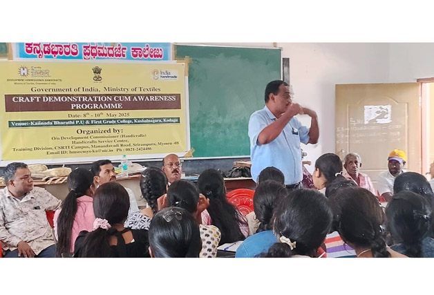 ಕುಶಾಲನಗರ ಮೇ 12 NEWS DESK : ಕೇಂದ್ರ ಸರ್ಕಾರದ ಕರಕುಶಲ ಮತ್ತು ಜವಳಿ ಮಂತ್ರಾಲಯ ಇಲಾಖೆಯ ಮೈಸೂರಿನ ಕರಕುಶಲ ವಿಸ್ತರಣಾ ಸೇವಾ ಕೇಂದ್ರದ ವತಿಯಿಂದ ಕುಶಾಲನಗರ ಪಟ್ಟಣದ ಕನ್ನಡ ಭಾರತಿ ಪ್ರಥಮ ದರ್ಜೆ ಕಾಲೇಜಿನಲ್ಲಿ ಮೂರು ದಿನಗಳ ಕಾಲ ಏರ್ಪಡಿಸಿದ್ದ ಕರಕುಶಲ ವಸ್ತುಗಳ ತಯಾರಿಕೆ ಶಿಬಿರ ಹಾಗೂ ಜಾಗೃತಿ ಕಾರ್ಯಕ್ರಮ ಮುಕ್ತಾಯಗೊಂಡಿತು. ಶಿಬಿರದಲ್ಲಿ ಸಮಾರೋಪ ಭಾಷಣ ಮಾಡಿದ ಕನ್ನಡ ಸಾಹಿತ್ಯ ಪರಿಷತ್ತು ಜಿಲ್ಲಾ ಸಮಿತಿಯ ಸದಸ್ಯ ಎಂ.ಎನ್.ವೆಂಕಟನಾಯಕ್, ಇಂತಹ ಕಲಾ ಶಿಬಿರಗಳು ಜೀವನದಲ್ಲಿ ಕಲಾ ಉತ್ಸವದ ಸೆಲೆಯಾಗಿ ರೂಪುಗೊಳ್ಳಲು ಸಹಕಾರಿಯಾಗಿವೆ ಎಂದರು. ಕಲೆ, ಸಂಸ್ಕೃತಿ ಹಾಗೂ ಕರಕುಶಲ ಕಲೆಯಲ್ಲಿ ಶ್ರೀಮಂತಿಕೆಯನ್ನು ಹೊಂದಿರುವ ಭಾರತದಲ್ಲಿ ಕರಕುಶಲ ಕಲೆಯು ಪ್ರಾಚೀನ ಕಾಲದಿಂದಲೂ ಮನುಷ್ಯನಿಗೆ ಕರಗತವಾಗಿ ಬೆಳೆದುಬಂದಿದೆ ಎಂದರು. ಕಲಾ ಶಿಬಿರಗಳು ವಿದ್ಯಾರ್ಥಿಗಳು ಹಾಗೂ ನಿರುದ್ಯೋಗಿಗಳಲ್ಲಿ ಕರಕುಶಲ ಕಲೆಯನ್ನು ಕರಗತ ಮಾಡಿಕೊಂಡು ಉತ್ತಮ ಜೀವನ ಕಂಡುಕೊಳ್ಳಲು ಸಹಕಾರಿಯಾಗಿವೆ ಎಂದು ವೆಂಕಟನಾಯಕ್ ಅಭಿಪ್ರಾಯಪಟ್ಟರು. ಅಧ್ಯಕ್ಷತೆ ವಹಿಸಿ ಮಾತನಾಡಿದ ಕಾಲೇಜು ಪ್ರಾಂಶುಪಾಲ ಕೆ.ಎಸ್.ರುದ್ರಪ್ಪ, ಇಂತಹ ಶಿಬಿರಗಳು ವಿದ್ಯಾರ್ಥಿಗಳಲ್ಲಿ ಕಲಾಭಿರುಚಿ ಜತೆಗೆ ಜೀವನದಲ್ಲಿ ಕಲಾ ಕೌಶಲ್ಯಗಳನ್ನು ಬೆಳೆಸಲು ಸಹಕಾರಿಯಾಗಿವೆ ಎಂದರು. ಶಿಬಿರದ ಸಂಚಾಲಕರೂ ಆದ ಕರಕುಶಲ ಕರ್ಮಿ ಕಲಾವಿದ ಜಿ.ಧರ್ಮಪ್ಪ ಮಾತನಾಡಿ, ಜನರಿಗೆ ಕರಕುಶಲ ಕಲೆಗಳ ಬಗ್ಗೆ ಅಭಿರುಚಿ ಬೆಳೆಸಿಕೊಳ್ಳಲು ಇಂತಹ ಶಿಬಿರ ನಡೆಸಲಾಗುತ್ತಿದೆ ಎಂದರು. ವಿಸ್ತರಣಾ ಕೇಂದ್ರದ ಅಭಿವೃದ್ಧಿ ಅಧಿಕಾರಿ ಎಂ.ಬಿ.ಶಾಬಿರಾ ಮಾತನಾಡಿದರು. ಶಿಬಿರಾರ್ಥಿಗಳಾದ ಮಂಜುನಾಥ್, ಅನುಷಾ, ಪ್ರಿಯ, ಮೋನಿಷಾ, ದೃಶ್ಯ ಶಿಬಿರದ ಕುರಿತು ಅನಿಸಿಕೆ ವ್ಯಕ್ತಪಡಿಸಿದರು. ಉಪನ್ಯಾಸಕ ಜಿ.ಮಹೇಶ್ ನಿರ್ವಹಿಸಿದರು.