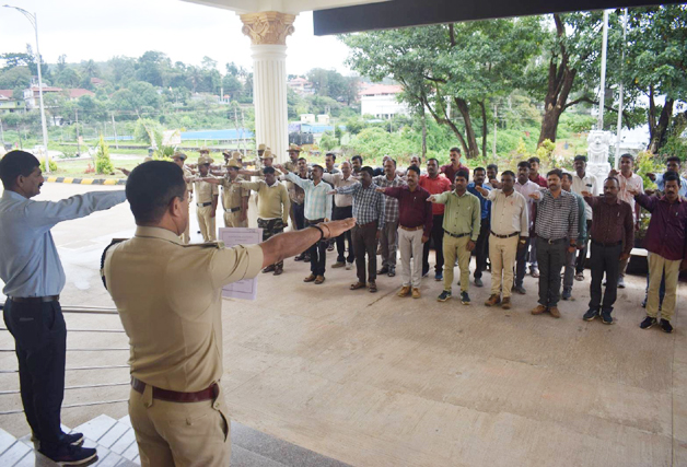 Share Facebook Twitter LinkedIn Pinterest WhatsApp Email ಮಡಿಕೇರಿ ಮೇ 22 NEWS DESK : ಜಿಲ್ಲಾ ಪೊಲೀಸ್ ಕಚೇರಿಯಲ್ಲಿ ಭಯೋತ್ಪಾದನಾ ವಿರೋಧಿ ದಿನವನ್ನು ಆಚರಿಸಲಾಯಿತು. ಕಚೇರಿಯ ಆವರಣದಲ್ಲಿ ನಡೆದ ಕಾರ್ಯಕ್ರಮದಲ್ಲಿ ಕಚೇರಿಯ ಅಧಿಕಾರಿ ಸಿಬ್ಬಂದಿಯವರಿಗೆ ಜಿಲ್ಲೆಯ ಅಪರ ಪೊಲೀಸ್ ಅಧೀಕ್ಷಕ ಬಿ.ಪಿ.ದಿನೇಶ್ ಕುಮಾರ್ ಭಯೋತ್ಪಾದನಾ ವಿರೋಧಿ ಪ್ರತಿಜ್ಞೆಯನ್ನು ಬೋಧಿಸಿದರು.