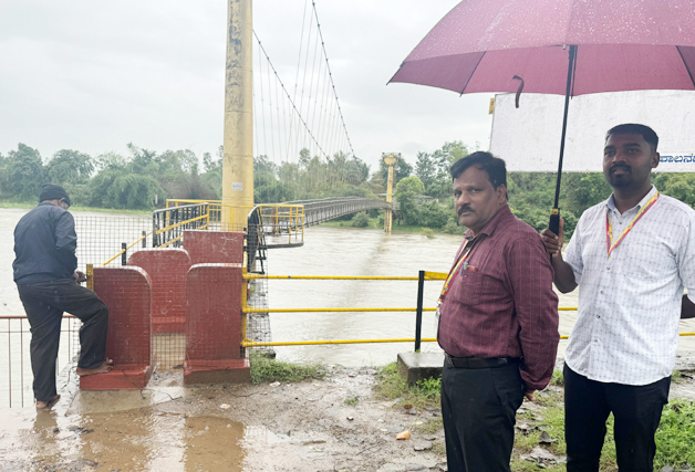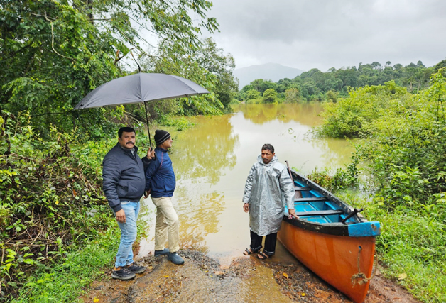 ಮಡಿಕೇರಿ ಜೂ.18 NEWS DESK : ಕೊಡಗು ಜಿಲ್ಲೆಯಲ್ಲಿ ಗಾಳಿಮಳೆ ಮುಂದುವರೆದಿದ್ದು, ಗ್ರಾಮೀಣ ಭಾಗದ ಜನಜೀವನ ಅಸ್ತವ್ಯಸ್ತಗೊಂಡಿದೆ. ಕಾವೇರಿ ತೀರದ ಹಲವು ಪ್ರದೇಶಗಳು ಜಲಾವೃತಗೊಂಡಿದ್ದು, ಸಂಪರ್ಕ ವ್ಯವಸ್ಥೆ ಕಡಿತಗೊಂಡಿದೆ. ಕಾವೇರಿ ನದಿಯ ಉಗಮಸ್ಥಾನ ತಲಕಾವೇರಿ ಹಾಗೂ ಭಾಗಮಂಡಲದಲ್ಲಿ ಕಳೆದ 24 ಗಂಟೆಗಳಲ್ಲಿ ದಾಖಲೆಯ 8 ಇಂಚು ಮಳೆಯಾಗಿದೆ. ಕರಡಿಗೋಡು ಗ್ರಾಮದ ಹೊಳೆಕೆರೆ ರಸ್ತೆ ಕಾವೇರಿ ನದಿ ಪ್ರವಾಹದಿಂದ ಸಂಪರ್ಕ ಕಡಿತಗೊಂಡಿದ್ದು, ಬದಲಿ ರಸ್ತೆ ವ್ಯವಸ್ಥೆ ಕಲ್ಪಿಸಲಾಗಿದೆ. ಸ್ಥಳಕ್ಕೆ ಕಂದಾಯ ಪರಿವೀಕ್ಷಕರು ಭೇಟಿ ನೀಡಿ ಪರಿಶೀಲನೆ ನಡೆಸಿದರು. ಸಾರ್ವಜನಿಕರು ಅಪಾಯದ ಸ್ಥಳಗಳಿಗೆ ತೆರಳದಂತೆ ಹಾಗೂ ಕಾಳಜಿ ಕೇಂದ್ರದಲ್ಲಿ ಆಶ್ರಯ ಪಡೆಯುವಂತೆ ಸೂಚನೆ ನೀಡಿದರು. ಹೆಬ್ಬಾಲೆ ಗ್ರಾಮ ಪಂಚಾಯಿತಿ ವ್ಯಾಪ್ತಿಯ ಕಣಿವೆ ಶ್ರೀ ರಾಮಲಿಂಗೇಶ್ವರ ದೇವಾಲಯದ ಸಮೀಪದಲ್ಲಿ ಕಾವೇರಿ ನದಿಗೆ ಅಡ್ಡಲಾಗಿ ನಿರ್ಮಿಸಲಾಗಿರುವ ತೂಗು ಸೇತುವೆ ಅಪಾಯದ ಅಂಚಿನಲ್ಲಿದೆ. ತಹಶೀಲ್ದಾರರಾದ ಕಿರಣ್ ಗೌರಯ್ಯ ಸ್ಥಳಕ್ಕೆ ಭೇಟಿ ನೀಡಿ ಪರಿಶೀಲನೆ ನಡೆಸಿದರು. ಮಳೆ ಹೆಚ್ಚಿರುವುದರಿಂದ ಸೇತುವೆಯಲ್ಲಿ ಪ್ರವಾಸಿಗರು ತೆರಳದಂತೆ ರಾಮೇಶ್ವರ ದೇವಾಲಯದ ಬಳಿಗೆ ಹೋಗುವ ಗೇಟ್ ಗೆ ಬೀಗ ಅಳವಡಿಸಲಾಗಿದೆ. ನಿರಂತರ ಮಳೆಯಿಂದಾಗಿ ಚೇರಂಬಾಣೆ ಗ್ರಾಮ ಪಂಚಾಯತಿ ವ್ಯಾಪ್ತಿಯ ಬೇಂಗೂರು ಗ್ರಾಮದ ದೋಣಿ ಕಾಡು ರಸ್ತೆ ಜಲಾವೃತಗೊಂಡಿದೆ. ಸ್ಥಳಕ್ಕೆ ಮಡಿಕೇರಿ ತಾಲ್ಲೂಕು ತಹಶೀಲ್ದಾರರು ಭೇಟಿ ನೀಡಿ ಪರಿಶೀಲಿಸಿದರು. ಸಾರ್ವಜನಿಕರ ಅನುಕೂಲಕ್ಕಾಗಿ ದೋಣಿ ವ್ಯವಸ್ಥೆ ಕಲ್ಪಿಸಲಾಗಿದೆ. ಭಾಗಮಂಡಲ ಹೋಬಳಿ ಕಂದಾಯ ಪರಿವೀಕ್ಷಕರು ಹಾಗೂ ಗ್ರಾಮ ಆಡಳಿತ ಅಧಿಕಾರಿಗಳು ಹಾಜರಿದ್ದರು. ಹಾರಂಗಿ ಜಲಾನಯನ ಪ್ರದೇಶಗಳಲ್ಲಿ ವ್ಯಾಪಕ ಮಳೆ ಸುರಿಯುತ್ತಿರುವ ಹಿನ್ನೆಲೆಯಲ್ಲಿ ಜಲಾಶಯಕ್ಕೆ ಒಳಹರಿವಿನ ಪ್ರಮಾಣ ಹೆಚ್ಚಾಗಿದ್ದು, ಮುಂಜಾಗೃತಾ ಕ್ರಮವಾಗಿ ಇಂದು ಮಧ್ಯಾಹ್ನ 18 ಸಾವಿರ ಕ್ಯೂಸೆಕ್ ನೀರನ್ನು ನದಿಗೆ ಹರಿಬಿಡಲಾಗಿದೆ. ತಲಕಾವೇರಿ ಹಾಗೂ ಭಾಗಮಂಡಲ ಭಾಗದಲ್ಲಿ ಭಾರೀ ಗಾಳಿ ಸಹಿತ ಧಾರಾಕಾರ ಮಳೆಯಾಗುತ್ತಿದೆ. ಕಳೆದ 24 ಗಂಟೆಗಳಲ್ಲಿ ದಾಖಲೆಯ 8 ಇಂಚು ಮಳೆಯಾಗಿದ್ದು, ಭಾಗಮಂಡಲದ ತ್ರಿವೇಣಿ ಸಂಗಮದಲ್ಲಿ ನೀರಿನ ಮಟ್ಟ ಏರಿಕೆಯಾಗುತ್ತಿದೆ. ಜಿಲ್ಲೆಯ ಹಲವೆಡೆ ಅಧಿಕ ಮಳೆಯಿಂದ ಗದ್ದೆ, ಕಾಫಿ ಮತ್ತು ಅಡಿಕೆ ತೋಟಗಳು ಜಲಾವೃತಗೊಂಡಿವೆ. ಗ್ರಾಮೀಣ ಭಾಗದಲ್ಲಿ ಮರ ಮತ್ತು ವಿದ್ಯುತ್ ಕಂಬ ಬಿದ್ದು, ವಿದ್ಯುತ್ ಸಂಪರ್ಕ ಕಡಿತಗೊಂಡಿದೆ. ಮಡಿಕೇರಿ ತಾಲ್ಲೂಕಿನಲ್ಲಿ ಜನವರಿಯಿಂದ ಇಲ್ಲಿಯವರೆಗೆ ಅವಧಿಗೂ ಮೊದಲೇ 60 ಇಂಚು ಮಳೆ ದಾಖಲಾಗಿದೆ. ಜಿಲ್ಲೆಯಲ್ಲಿ ಕಳೆದ 24 ಗಂಟೆಗಳಲ್ಲಿ 75.67 ಮಿ.ಮೀ. ಮಳೆಯಾಗಿದೆ. ಕಳೆದ ವರ್ಷ ಇದೇ ದಿನ 8.36 ಮಿ.ಮೀ. ಮಳೆಯಾಗಿತ್ತು. ಜನವರಿಯಿಂದ ಇಲ್ಲಿಯವರೆಗಿನ ಮಳೆ 989.51 ಮಿ.ಮೀ, ಕಳೆದ ವರ್ಷ ಇದೇ ಅವಧಿಯಲ್ಲಿ 496.42 ಮಿ.ಮೀ ಮಳೆಯಾಗಿತ್ತು.